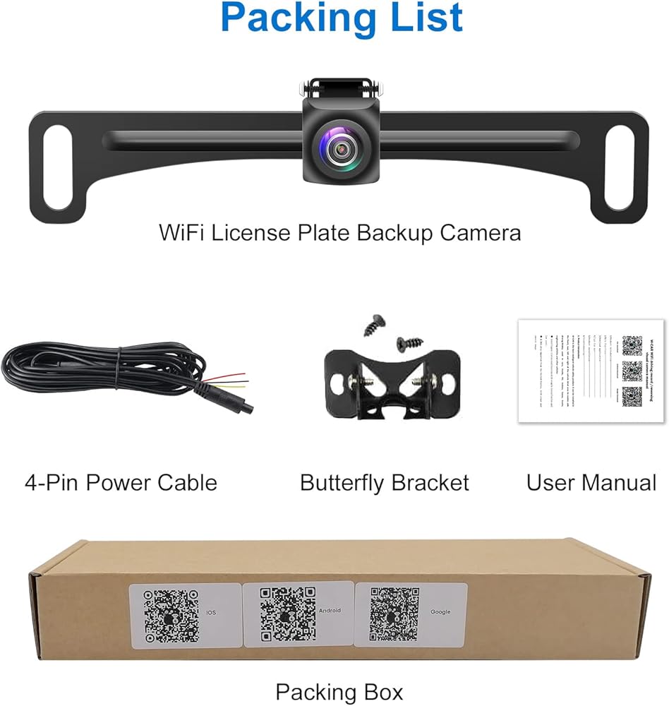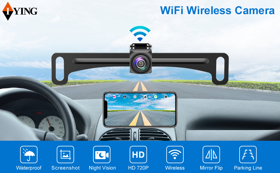 IYING Wireless Car Camera Backup Camera WiFi Rear View Camera 1080P HD License Plate Front/Rear Cam for iPhone iPad Android Phones Tablets, 170 Degrees Viewing Angle Waterproof Reverse Camera for Car
