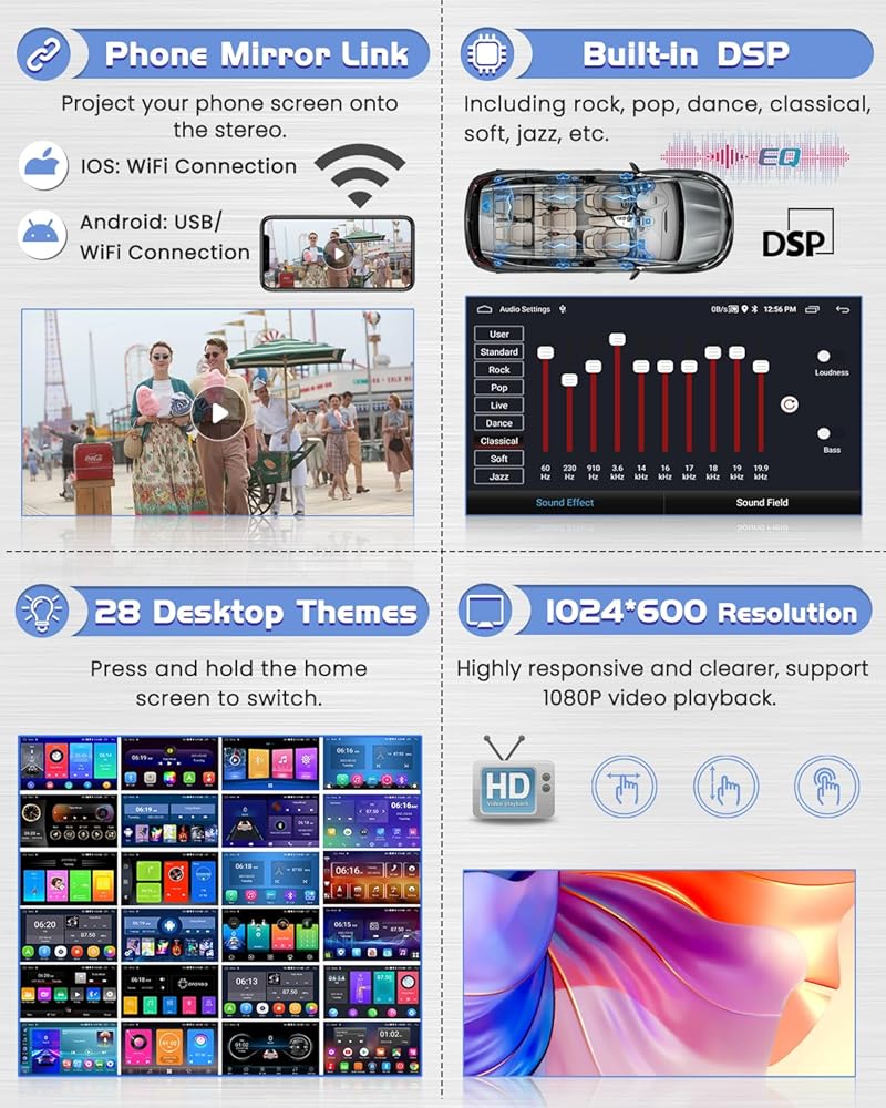 🚘[𝐍𝐞𝐰𝐞𝐬𝐭 𝟐+𝟔𝟒𝐆 𝐀𝐧𝐝𝐫𝐨𝐢𝐝 𝟏𝟑 𝐂𝐚𝐫 𝐑𝐚𝐝𝐢𝐨] HD capacitive touch screen radio for toyota rav4 with 1024 x 600 screen resolution, giving you an excellent visual playback experience when watching videos or navigating. Support multiple EQ options and Hi-Fi sound, allows you to enjoy a superior music listening experience.