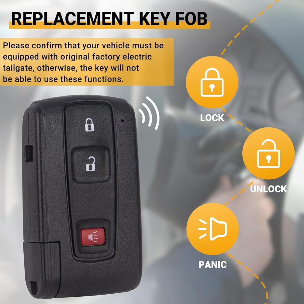 FITMENT- Replacement car key compatible with 2004 2005 2006 2007 2008 2009 Toyota Prius. Only works for SILVER LOGO Smart systems, NOT black