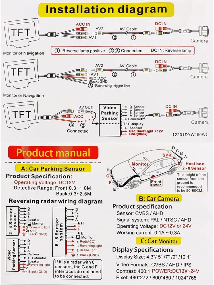 Detection range: Front: 0.3~1.0M Back: 0.3~2.5M