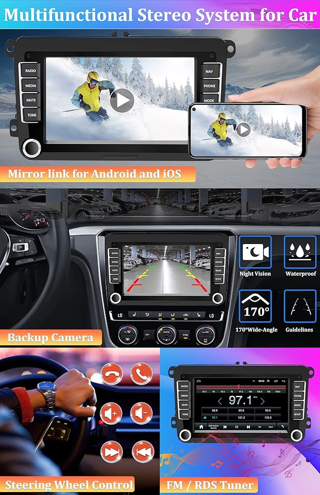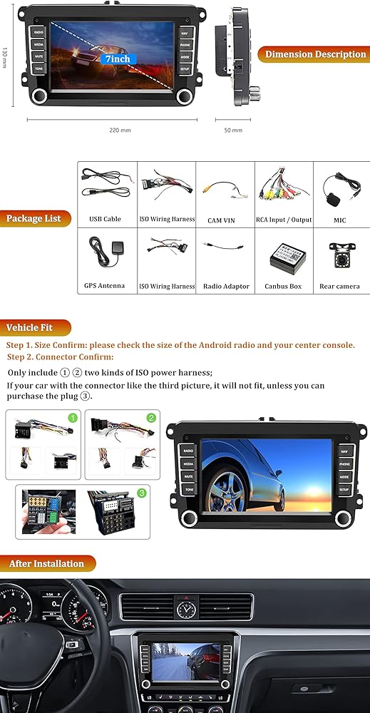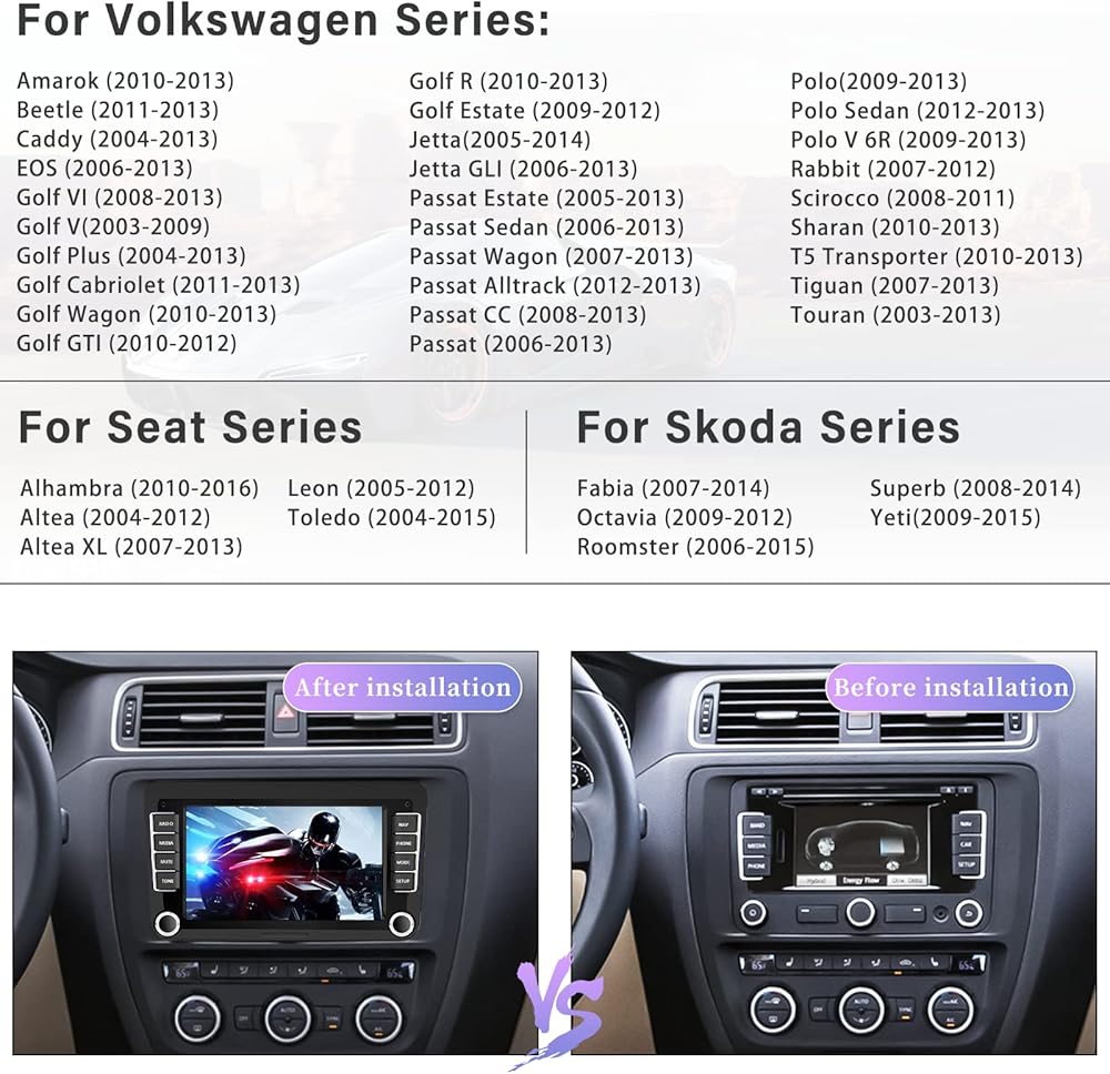 【Android Radio for Volkswagen Skoda Seat】The Android head unit with 7 inch touchscreen, is built-in Android 10.0 system and 1+16G storage while keeping all your favorite content within fingers reach. Compatible for Volkswagen Jetta, Beetle, Tiguan, Passat, Golf, Polo, Magotan, Touran, T5... and Skoda Octavia, Seat Altea ab...Just Plug in directly and play.