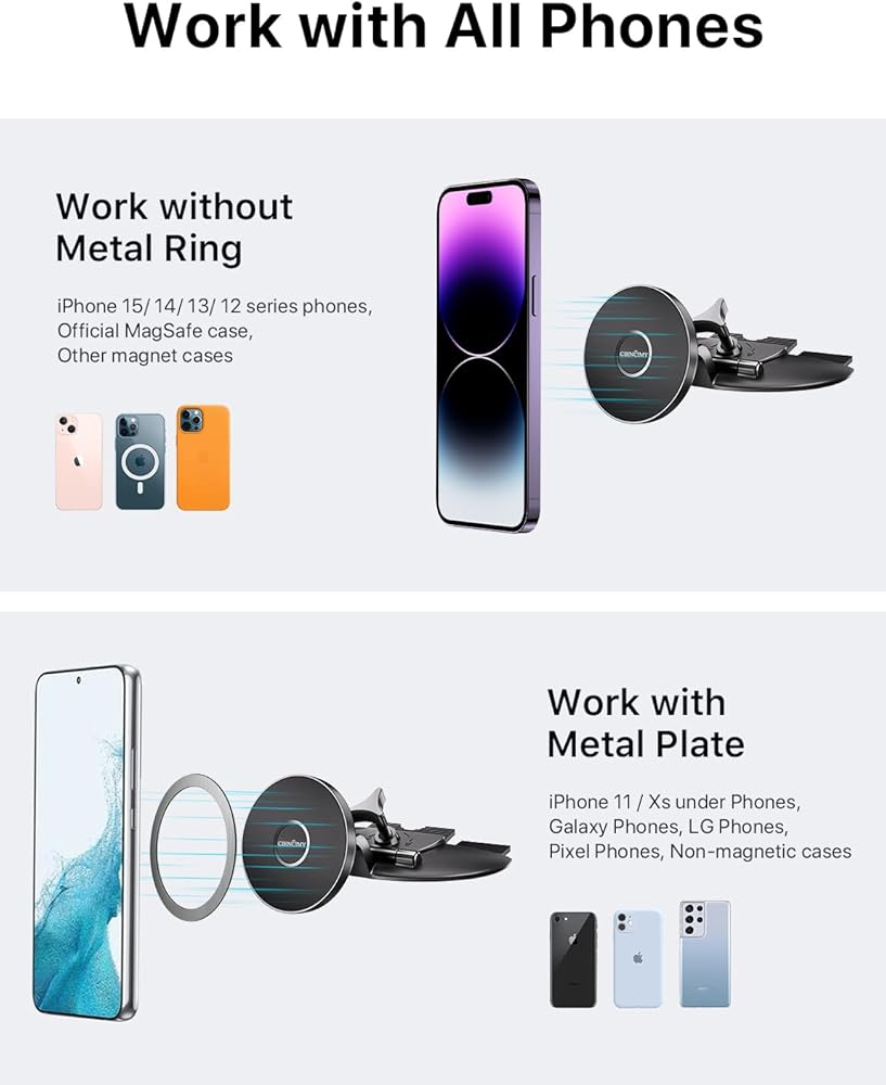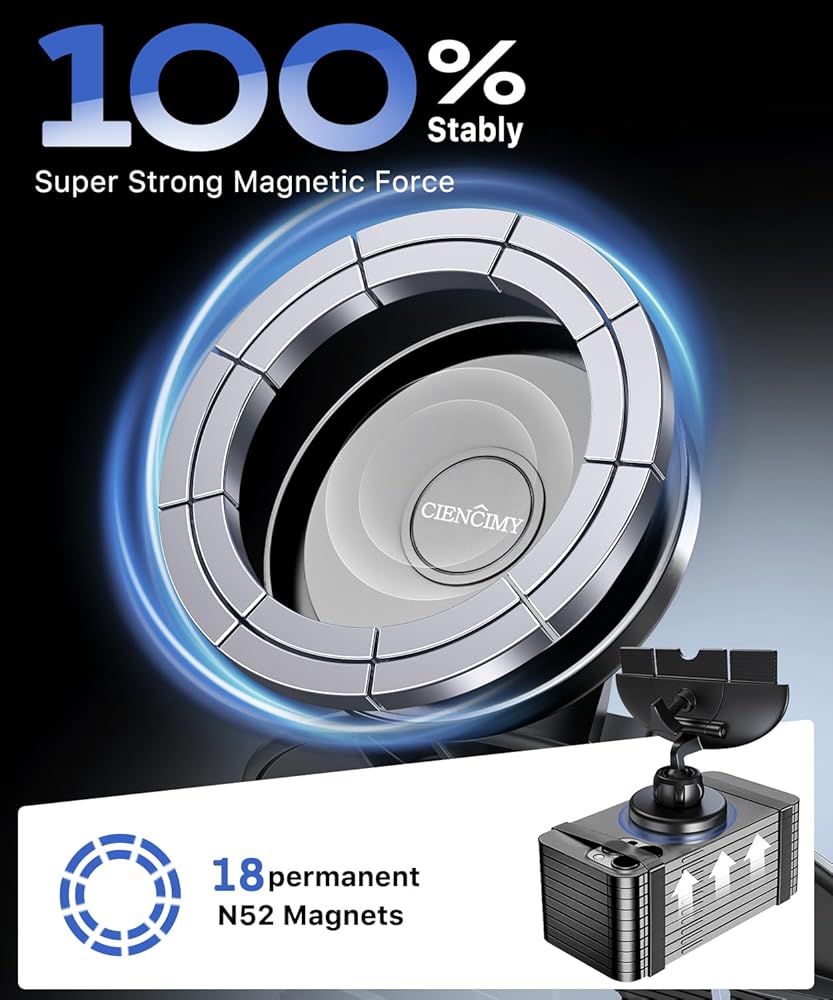 【Compatible with iPhone 15/14/13/12 Series】- Ciencimy newest upgrade-2nd generation magnetic car mount is exclusively compatible with Apple iPhone 15/14/13/12 Pro Max Plus Mini & Official Magnetic cases & other built-in magnet cases. Accurately match the magnet ring inside the phone within 0.1s, without any additional tedious operation