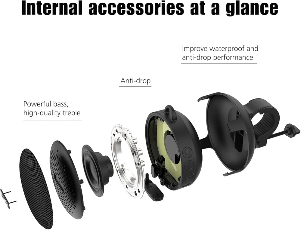 Upgraded Compact Portable Bluetooth 5.0 Wireless Bike 5W/8W Stereo Speaker, IP67 Waterproof Outdoor &10h Play Time, Advanced Class D Amplifier & Built-in Weighty Bass (5W Speaker)