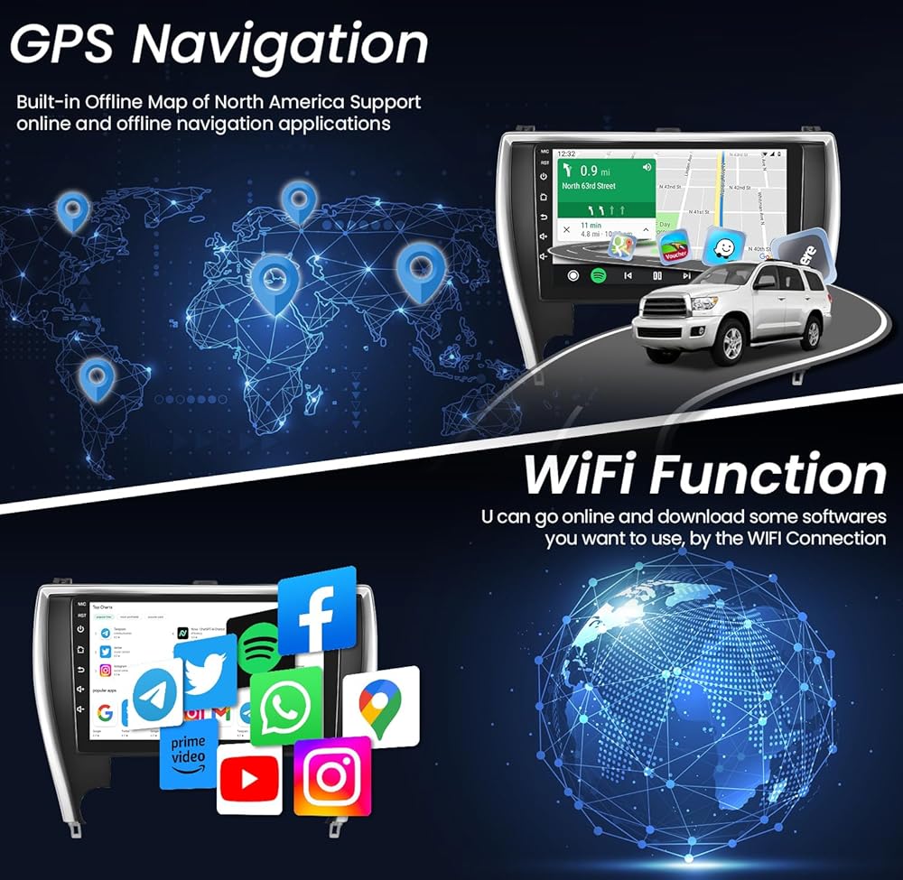 🚛【Wireless CarPlay and Android Auto Support】The camry radio offers support for both wireless CarPlay and wired Android Auto. This feature enables advanced voice control and effortless access to a range of phone functions such as music, GPS navigation, calls, radio, notifications, messages, and more. With hands-free operation, you can concentrate on safe driving while enjoying a convenient and secure driving experience