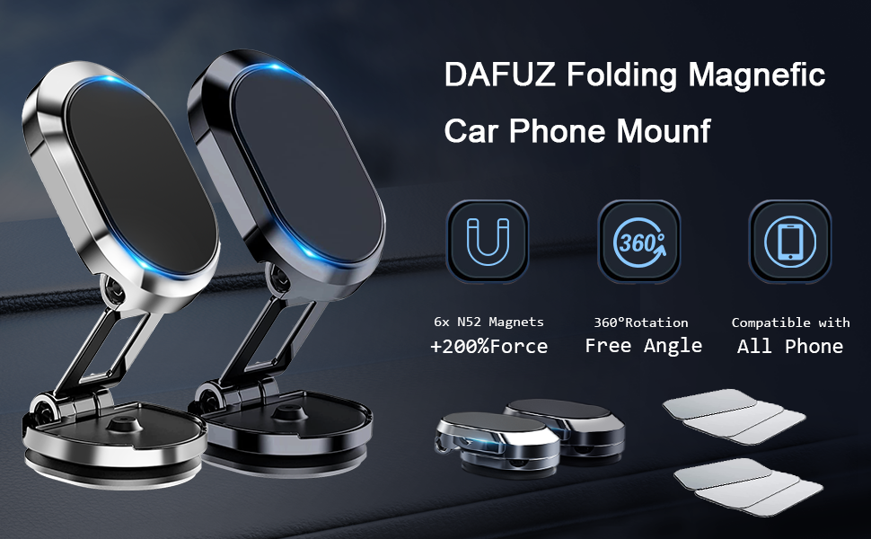 [STRONG MAGNETIC] Upgrade Foldable Magnetic Car Mount built-in 6*N52 Magnets and Wider Contact Surface, can create a powerful attraction that firmly supports your 4"-7"device while allowing you to drive without distraction.