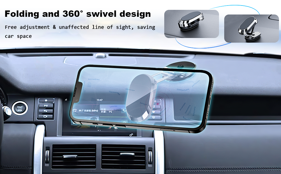 [360° FREE ROTATION] The Base of This Universal Car Phone Holder is equipped with Rotary Gears that Allow for 360° Adjustment and foldable bracket, which you can rotate your smartphone or device at your own will, providing the best viewing angle. Quickly pick and place with one hand, free your hands and make calls and GPS navigation more convenient.
