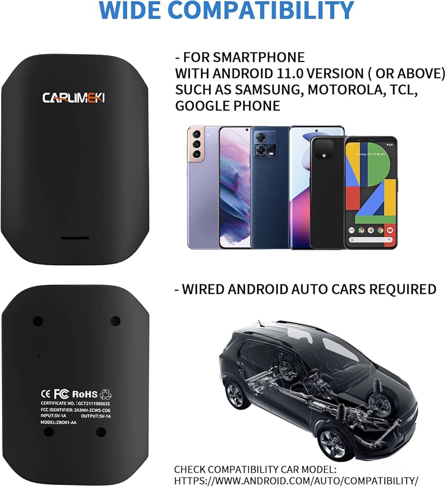 ▶▶【 COMPATIBLE DEVICES 】: Fit for smartphone with Android 11.0 version (or above) such as Samsung, Motorola, TCL, Google phone, and more. Most important of all, Wired Android Auto cars required.