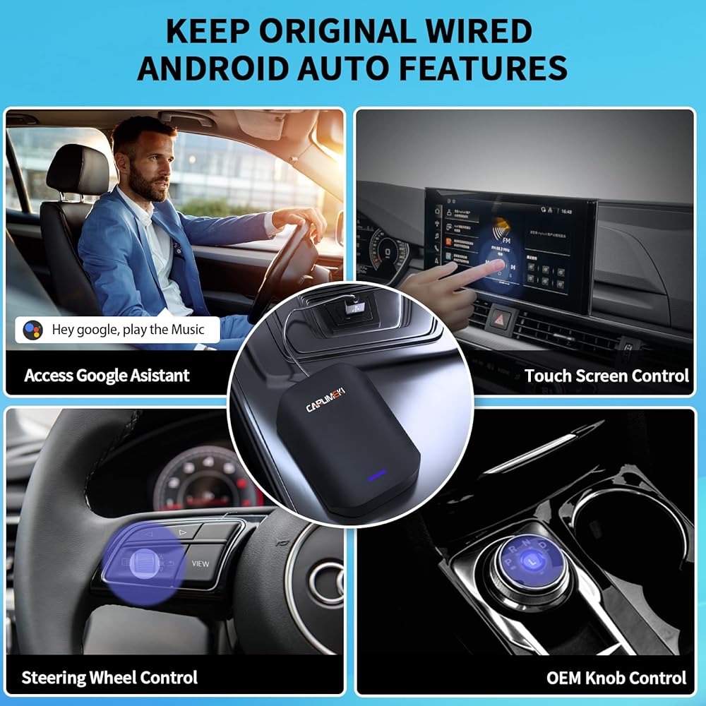 ▶▶【 KEEP ALL WIRED ANDROID AUTO FEATURES 】: This AA wireless adapter perfectly inherits the operation mode of the original car such as steering wheel control, google assistant voice control, OEM knob touch control, touch screen display control. Easily to access functions such as getting navigation, playing music, phone calling, etc. The lightweight stylish design of this android auto adapter makes it compact and easy to carry around without taking up too much space in your car.