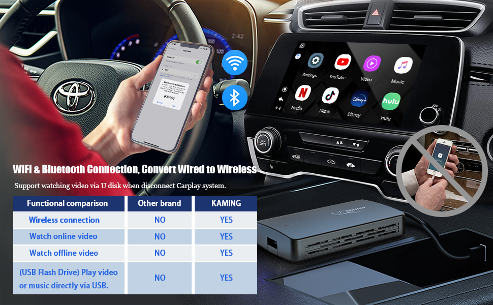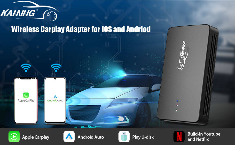 [ Watch Video via Netflix, Youtube or USB Disk ] - Connect to wifi or mobile phone hotspot, this apple Carplay dongle support for watching online videos in the car using Netflix and Youtube. Of course, you can also play offline videos or music via U disk when where there is no Wifi. Powerful USB flash drive function and easy to use. Especially suitable for self-driving tours.