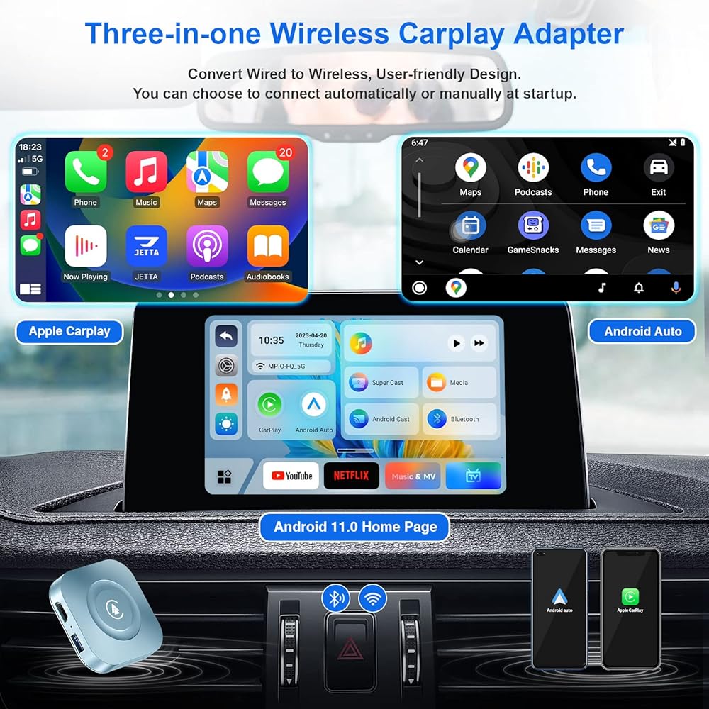 🚔 Innovative Wireless Carplay Android Auto Adapter - KAMING 2023 Android 11.0 wireless carplay adapter Work for all Wired Carplay Cars to convert to wireless carplay or wireless android auto. This magic box does not change any functions of Wired carplay or android auto, and it keep all the controls of the original car, such as navigation, music playing, phone calls, Siri assistant, etc. So it's just as convenient as use wired android auto or wired apple carplay!