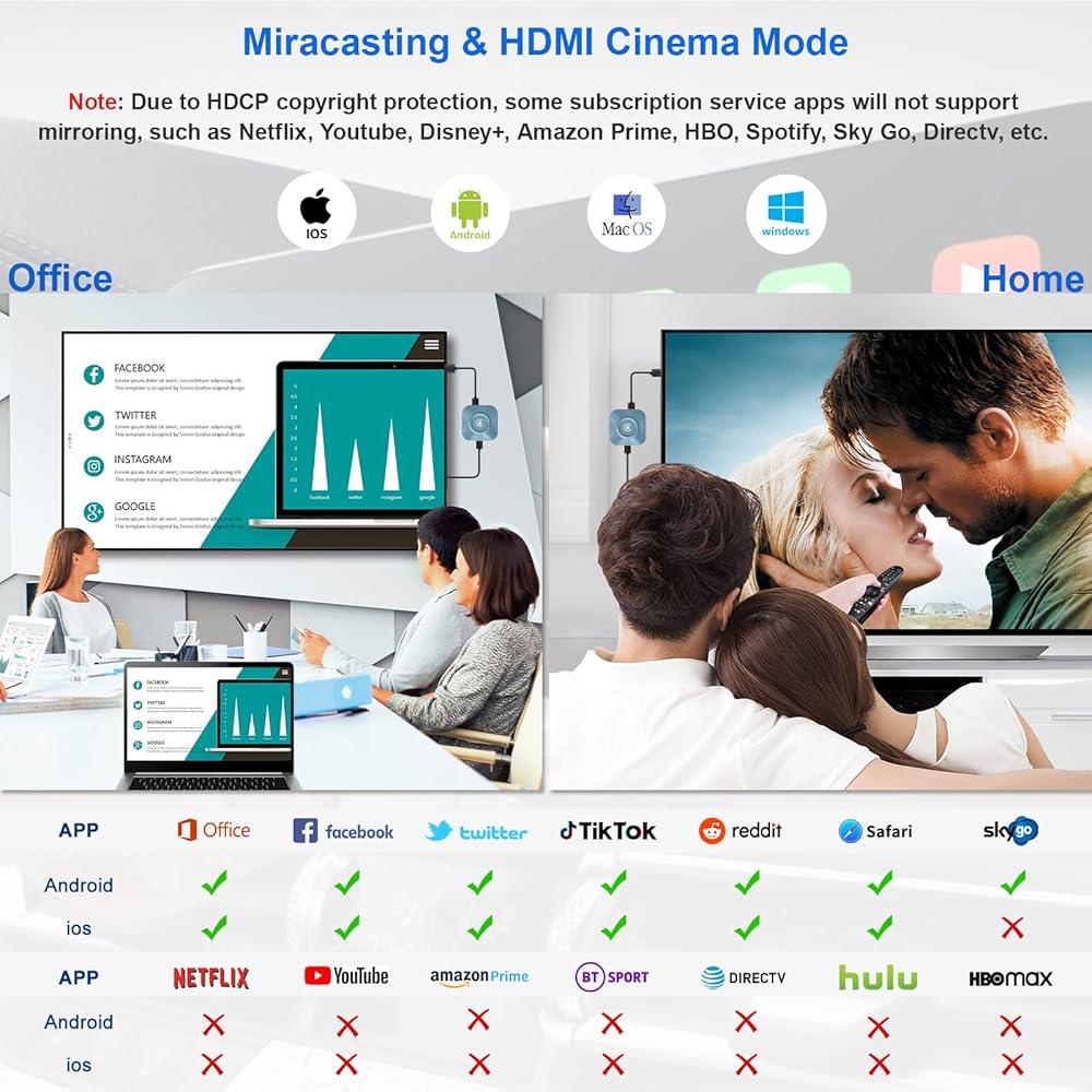 🚔 HDMI Output & Phone Casting to Car/TV/Projector - In your car, just connect thess carplay adapter to your phone's hotspot so that you can cast phone to car display. At home, all you need is an HDMI cable to connect it to HDMI-enabled input and output devices like your TV or projector to watch videos from built-in apps or mirroring cast movies or TV shows you love to watch.