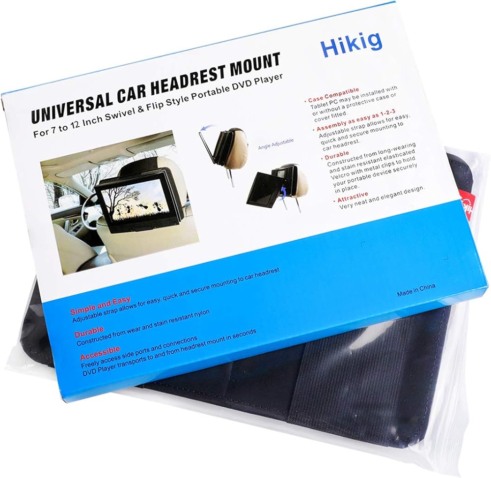 HANDS-FREE VIEWING - Hikig 7 inch to 11.5 inch Portable DVD Player Headrest Mount fits almost all 7 inch to 11 inch Screen Size Swivel & Flip style Portable DVD Players.