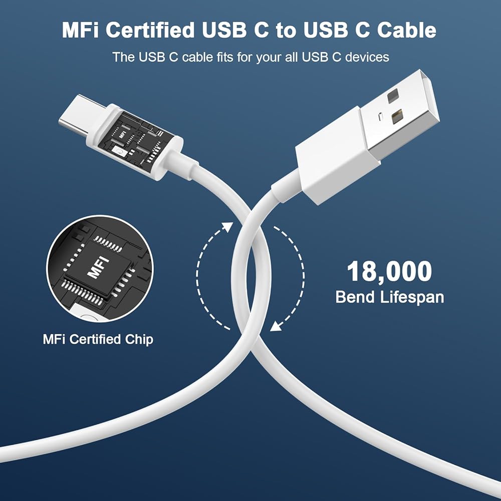 2 Pack MFi Certified USB to USB C Cable