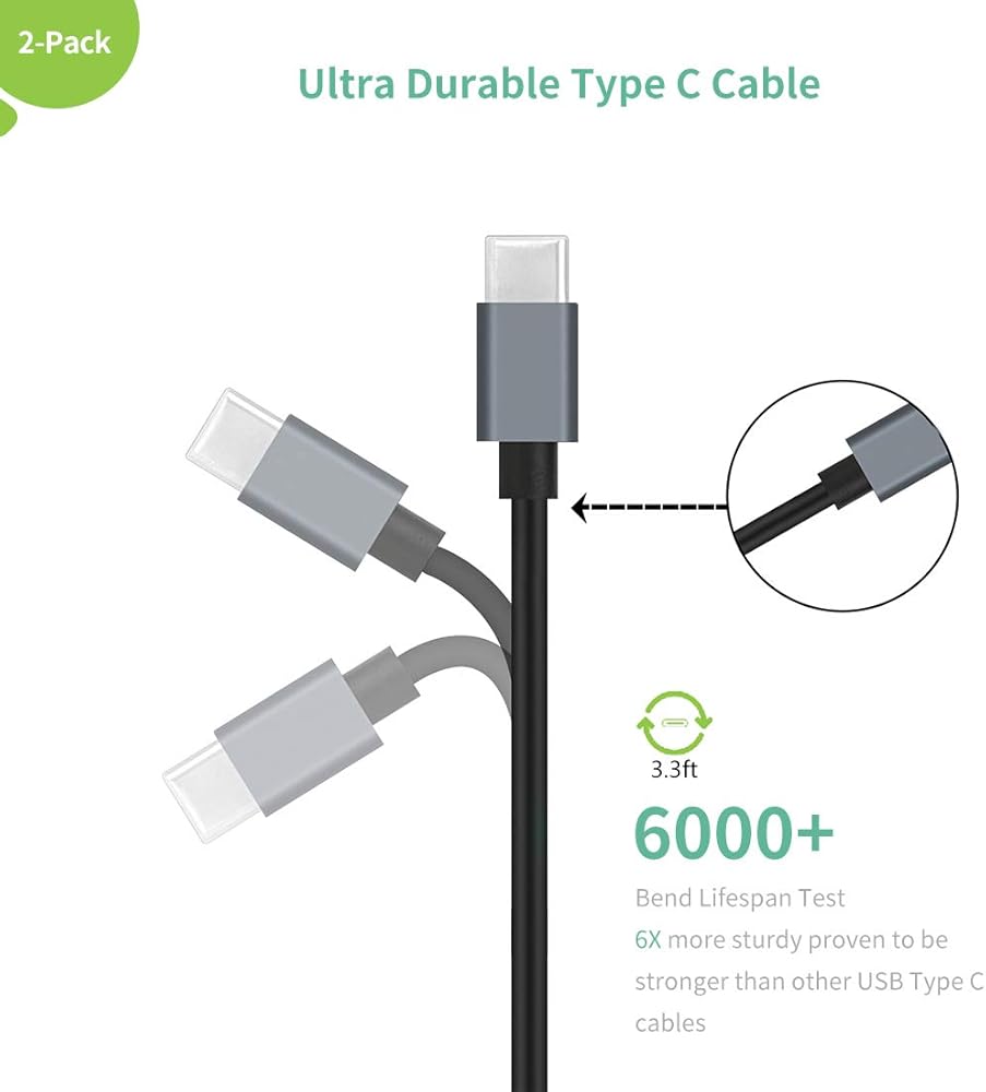 Ultra-durable USB A to C cable, 6.6 ft fast charging USB A to USB C cord, passed 6000+ bend lifespan test, lets you always insert the connector in the right way, and easy to carry when you want to go out