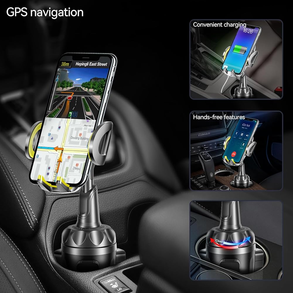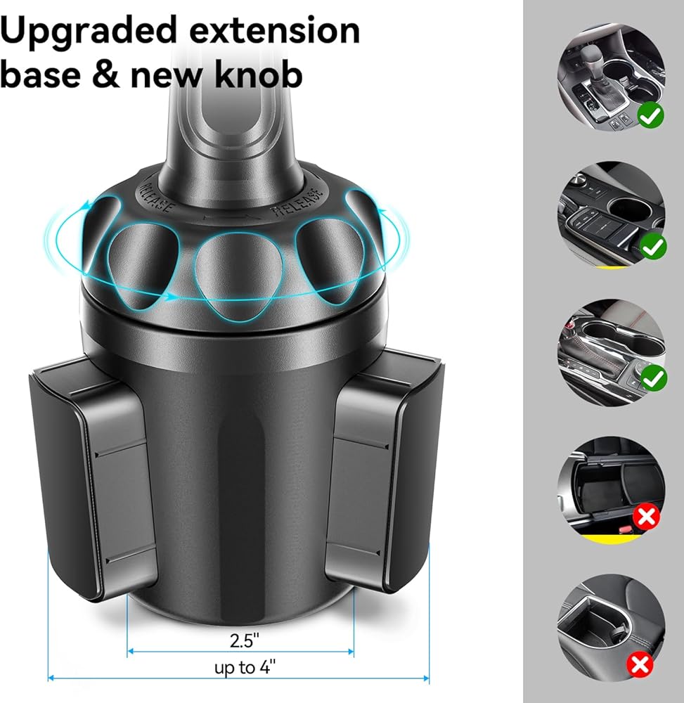 ⭐[Easy & Quick Installation]: Cup holder phone mount is Adjustable and fits firmly and perfectly,securely in the cup holder for car, truck or SUV, fitting to varying size cup holders in your vehicle. Featuring one-button release side arms and convenient holder legs. For those who have a car, this is worth having. It is the most reassuring choice to give this as a gift to someone you care about.