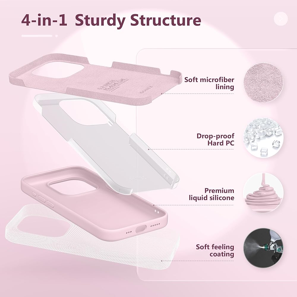 [Premium Silicone Material] Made of sturdy three-layer construction: liquid silicone, hard polycarbonate back cover and soft microfiber lining. The exterior silicone shell is featured with enhanced toughness, smooth touch, and optimal shockproof and anti-drop protection. The soft microfiber lining inside will not scratch your phone. The silicone case is also easy to clean, just wipe your case with a damp cloth or tissue to clean it up.