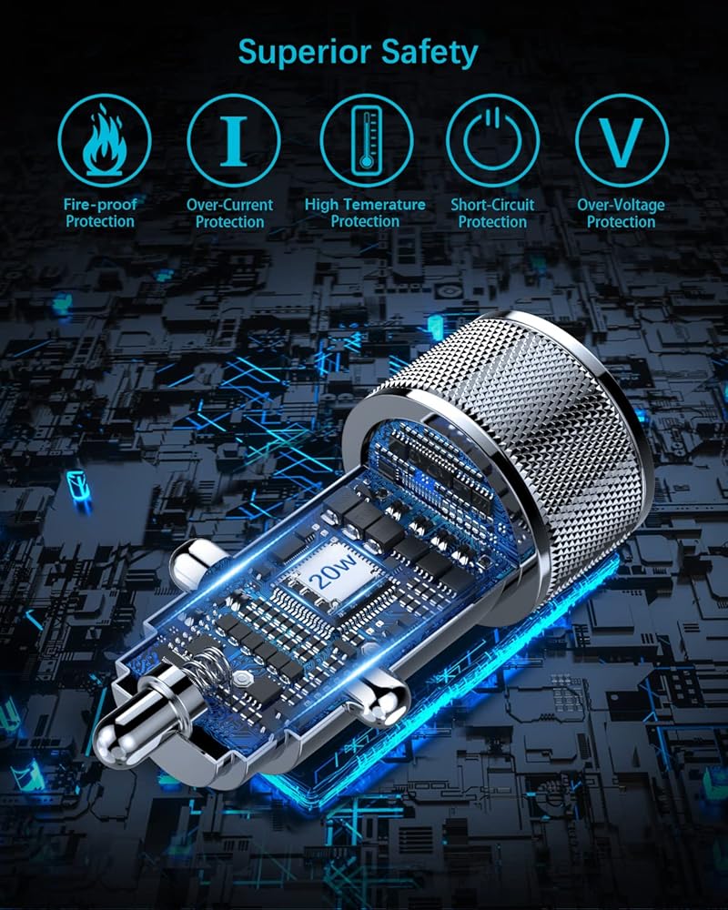 【Safe and Reliable】: The car phone charger passed CE FCC RoHS certification,built-in intelligent protection system to protect your devices from over-current,over-charging and over-heating ensures superior performance,safety and reliability.Charging will stop automatically when the battery is full. protects battery life and improves charging efficiency.