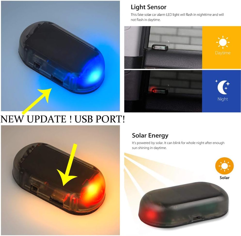 Car Anti Theft Light Demention: 5*2.5cm (2*1 inches)Exclusive new technology adds USB port to prevent rain without sunshine