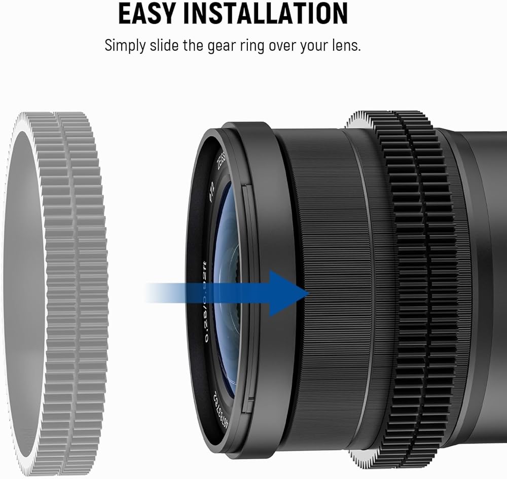 【Effortless Installation】 Focus gear ring can attach to a lens in a second and require no tools, much more convenient than previous models