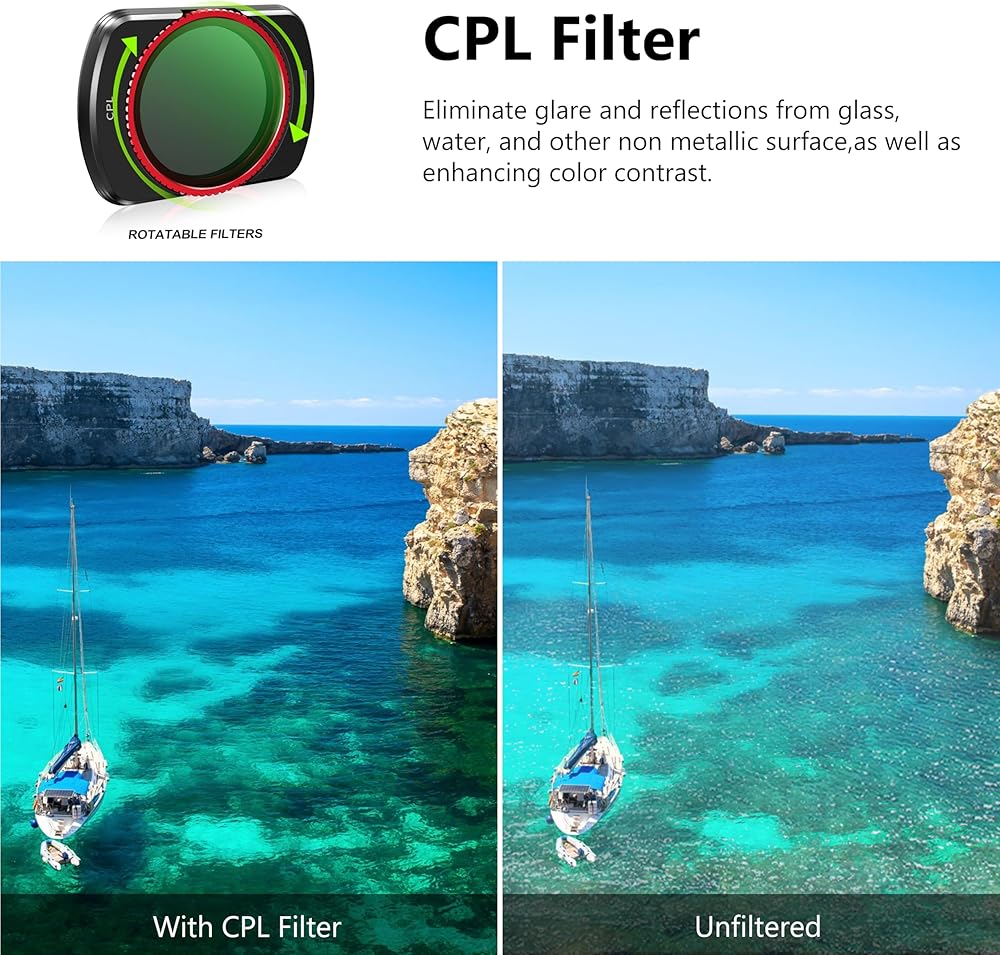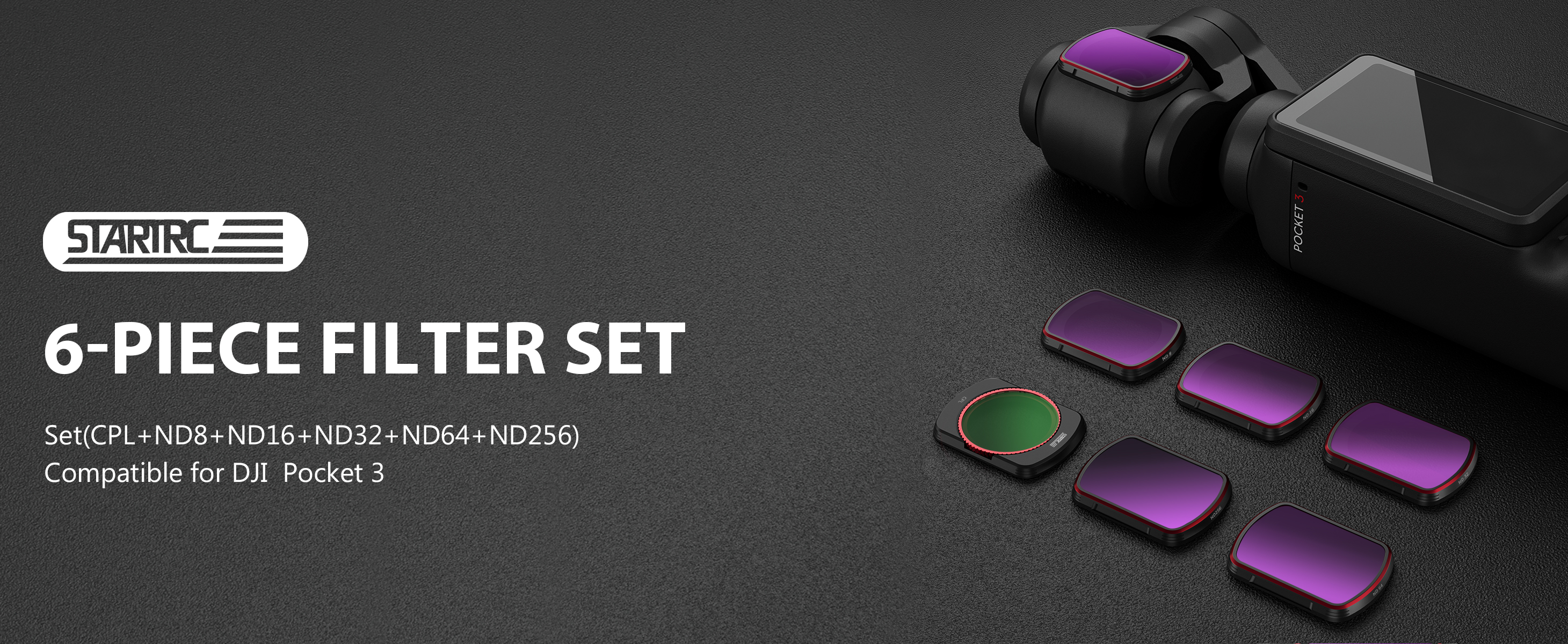 【6 Pieces】The packing list is ND8,ND16,ND32,ND64,ND256,CPL, excluding Osmo Pocket 3 Camera, 6 lens filters can give you more freedom to adjust and provide more choices for shooting.
