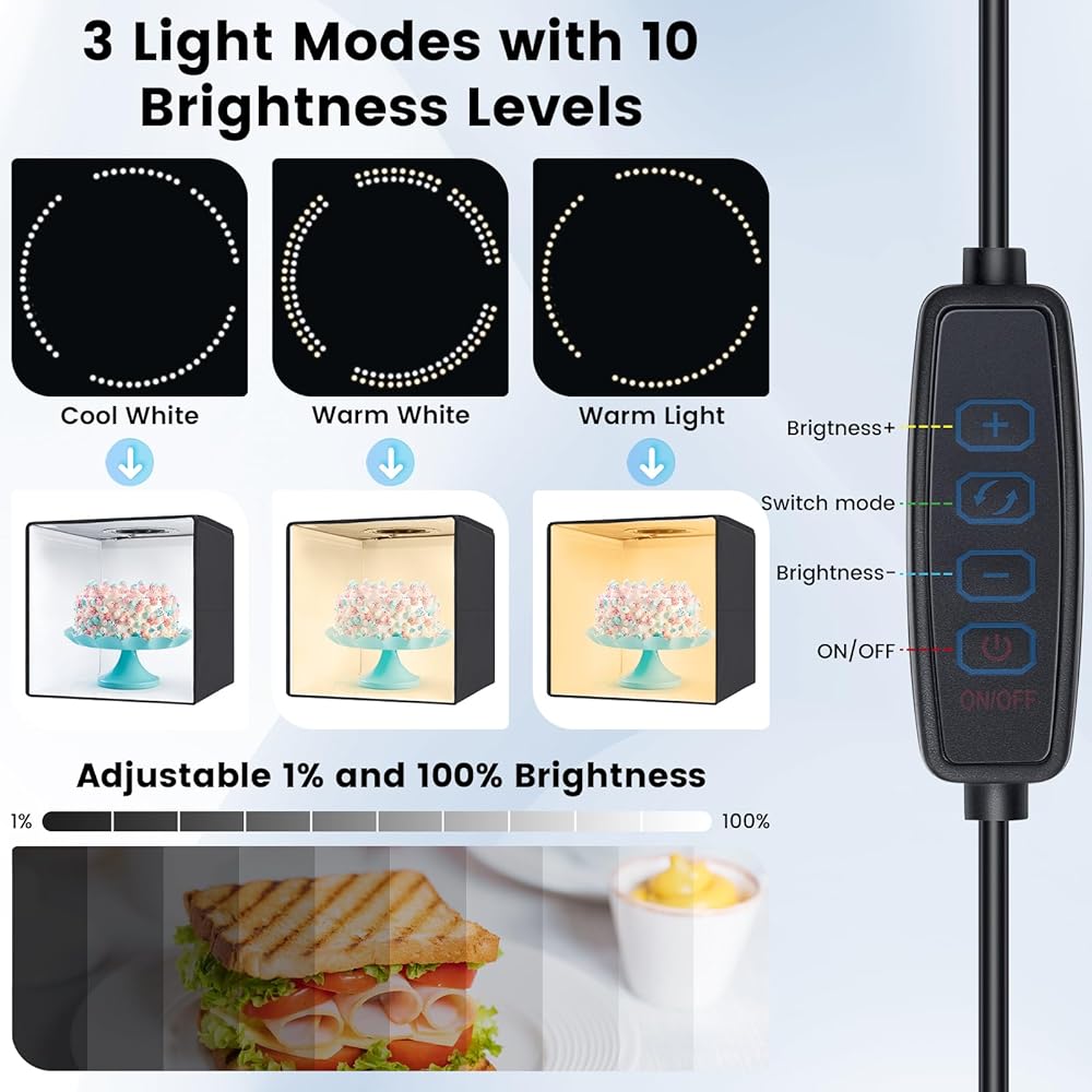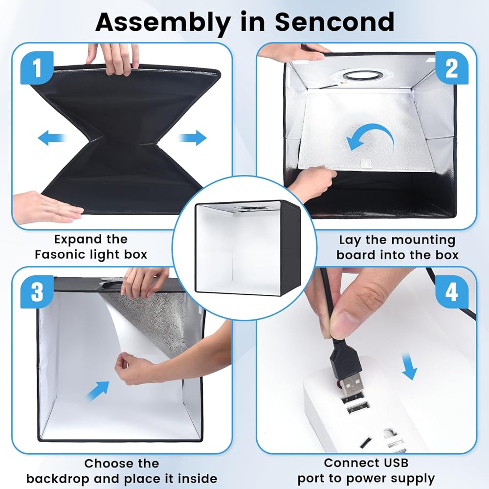 Easy Assembly: Our photo box is designed for simple assembly, with a unique folding design that allows for setup in 10 seconds. No brackets, screws, or complicated lighting layouts required.