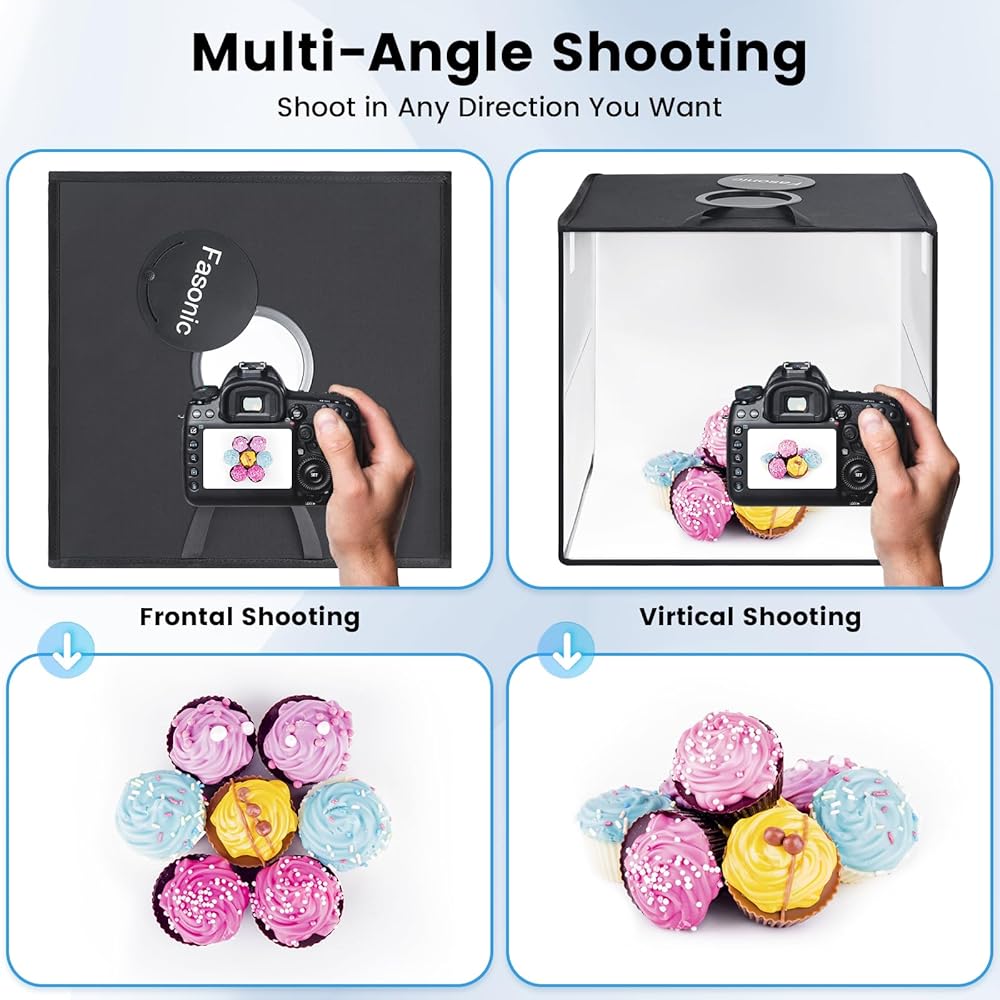 Versatile Shooting: Fasonic 16"x16" photo studio light box has multiple openings, enabling multi-angle shooting for showcasing all angles and details of your products.