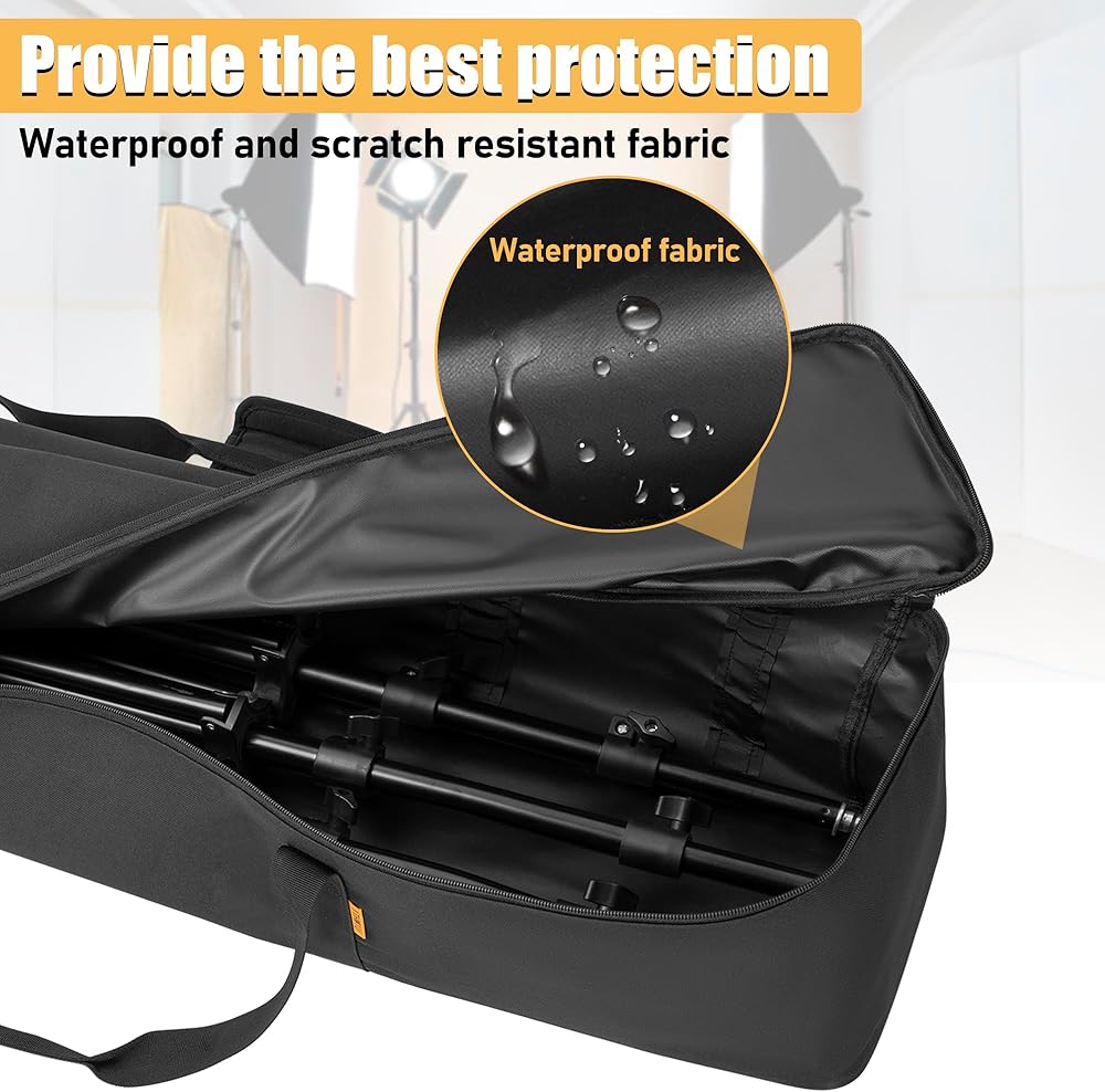 【Powerful Compatibility】The tripod case has a large enough space and is perfectly suited to hold light stands, boom stand, umbrellas, monolights, LED lights, flashes and other photographic equipment and accessories.