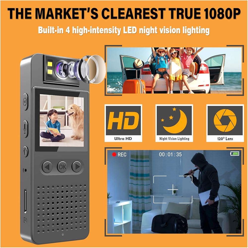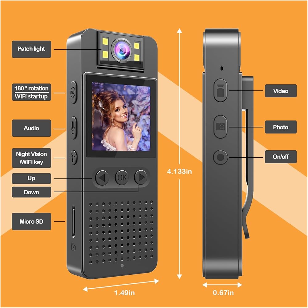 ✅【Multi Functional Expand Memory Small Body Cameras】Small body camera is equipped with audio loop recording function, at the same time, it also has a memory expansion function, supporting 32G/64G/128G/256G (maximum) memory support, the camera button is easy to operate.