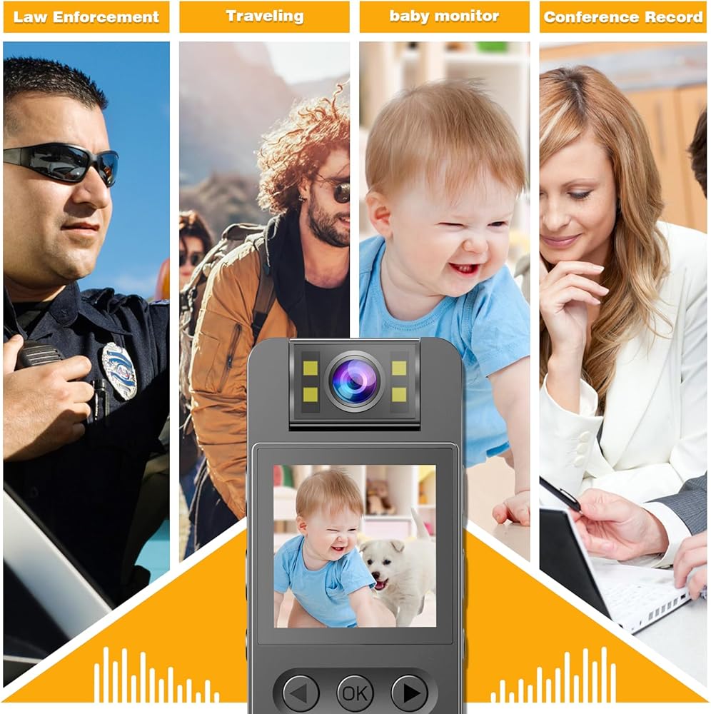 ✅ [True FULL HD 1080P Video Recorder with Audio] Body camera records clear HD video footage. Enjoy full HD recording function, photo function, recording function.Built-in 4pcs high intensity LED night vision lighting. In the pitch black darkness, up to 5 meters / 16 feet of clear video, peace of mind. 1.4-inch LCD screen, support real-time playback, free management of recorded video / audio / photos on the body.
