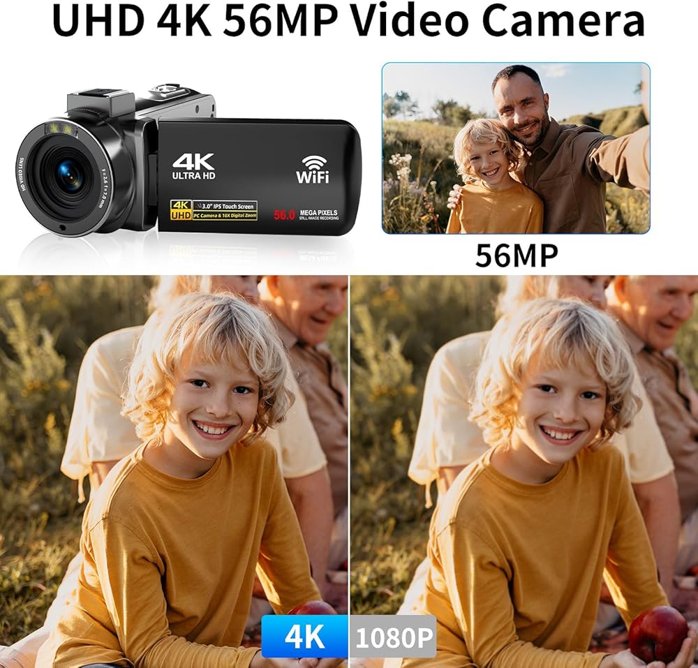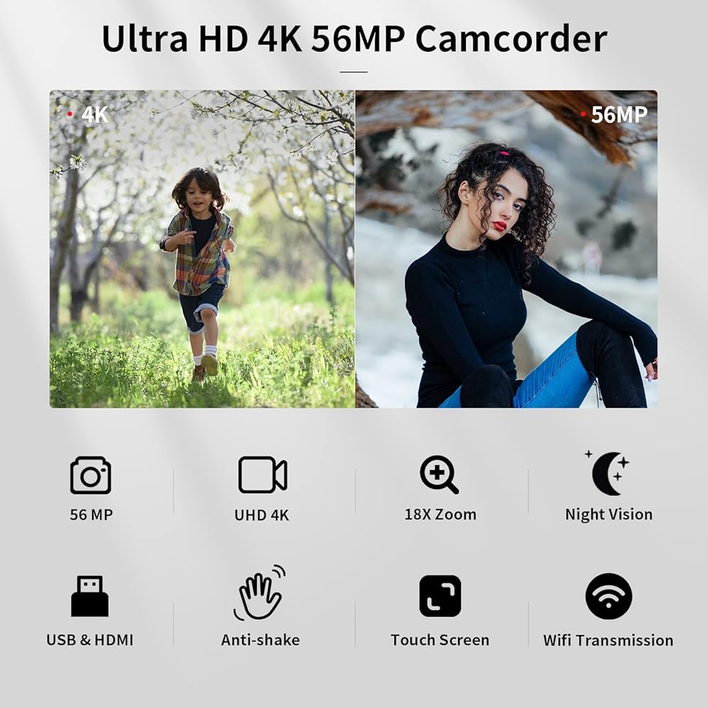 ★ High Quality Images - The video camera camcorder can take 56MP photos and Ultra HD 4K 30FPS videos, it is a good gift for friends, and family to record their special moments.