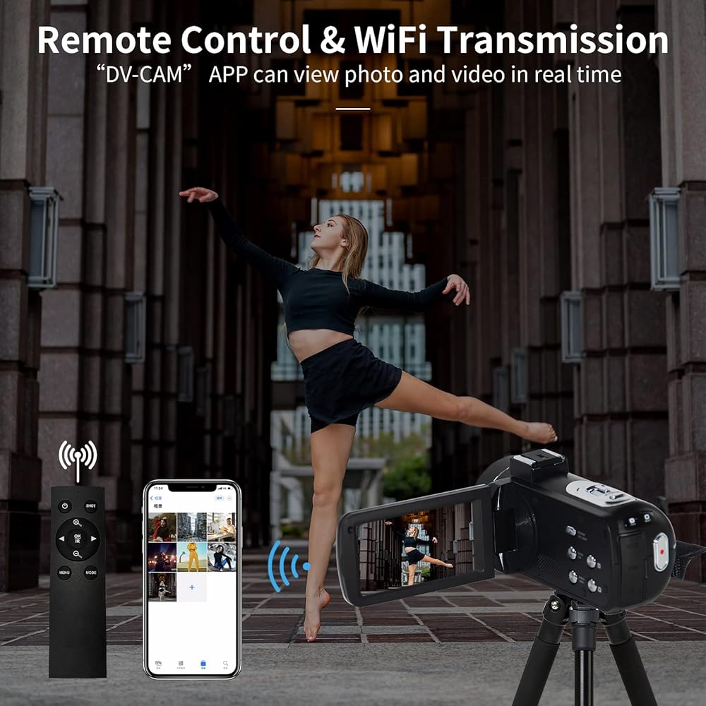★WiFi Transmission & Remote Control - The video recorder camera can easily browse, transmit and share photos and videos with your mobile device through the relevant APP. You can control to take photos and videos at a distance of 32 feets.