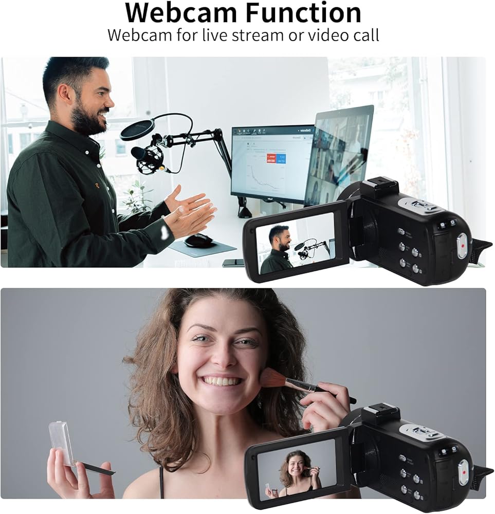 ★ Multifunctional - The camera recorder has a 3.0 inch IPS touch screen that supports 270° rotation, image stabilization, face capture, loop recording, time-lapse capture, self-timer and other functions