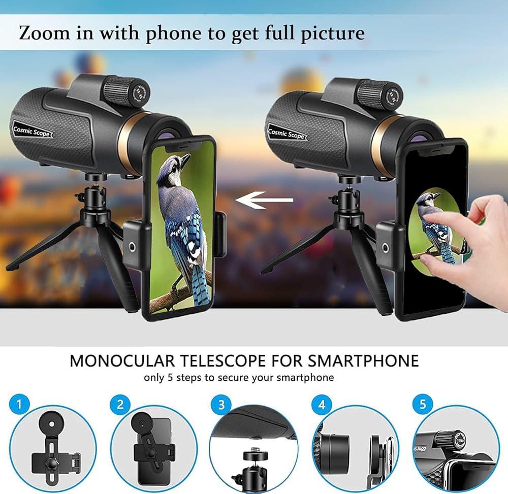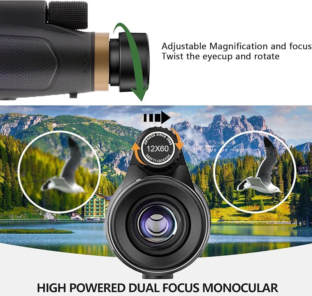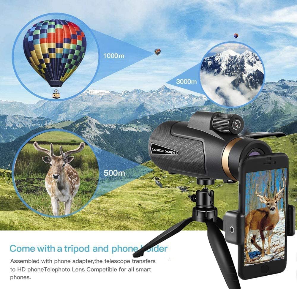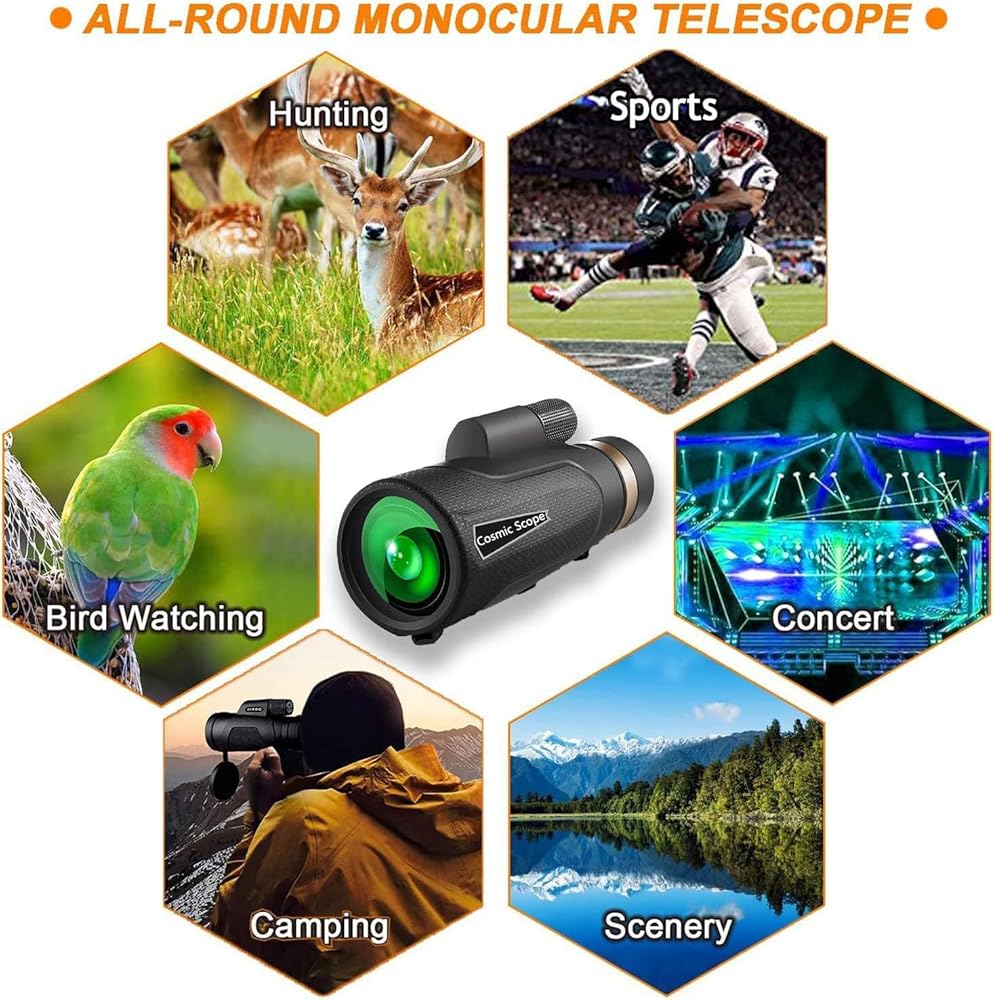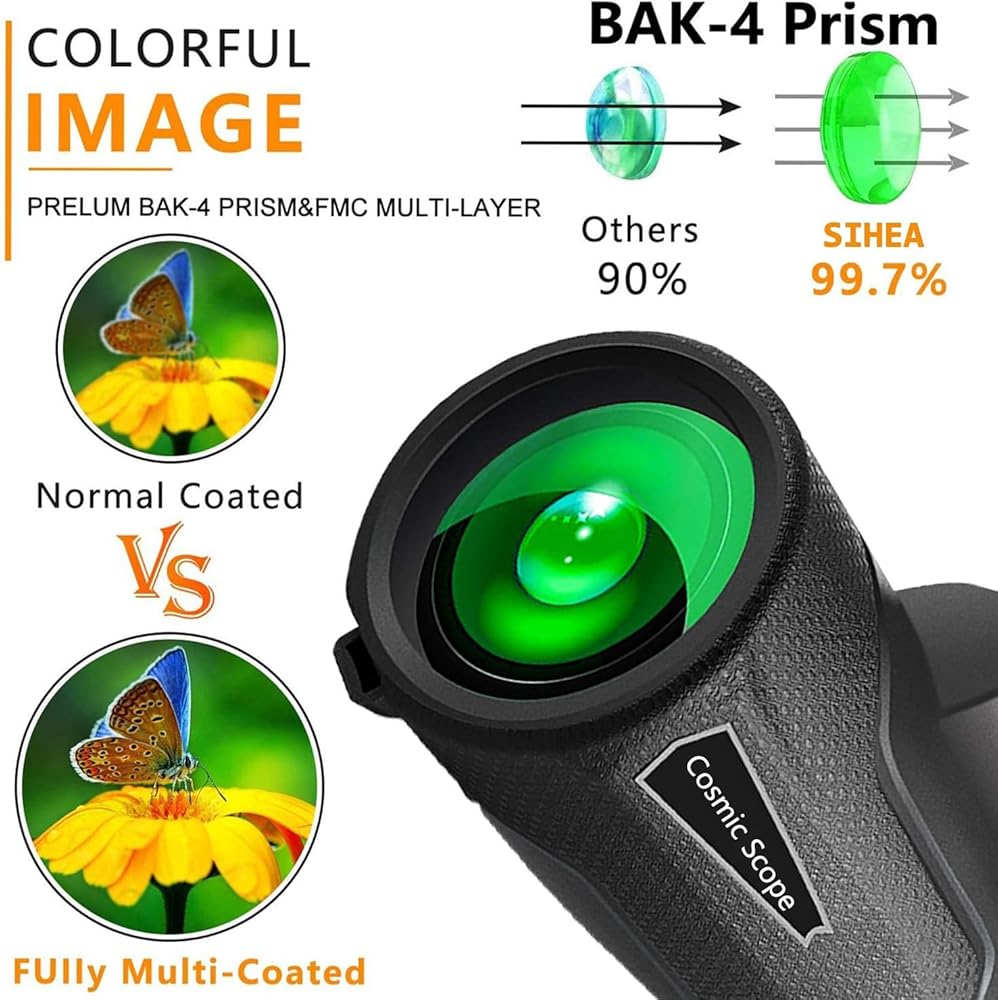 12X60 High Power Magnification - COSMIC SCOPE monocular equipped with A full 12x magnification and 60mm object lens diameter monocular, provides a clearly and bright image, enjoy the beauty of the distance. Sihea monocular telescope has large field of view (360ft 1,000Yds), have the best view in your outdoors adventures or hunting.