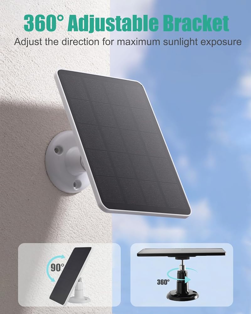 [Safe and Stable]Ring solar camera outdoor wireless equipped with an intelligent control chip, it maintains a stable output voltage of 5V and matches the appropriate output current to prevent any harm to charging devices. This ensures the safety and longevity of your charging equipment.