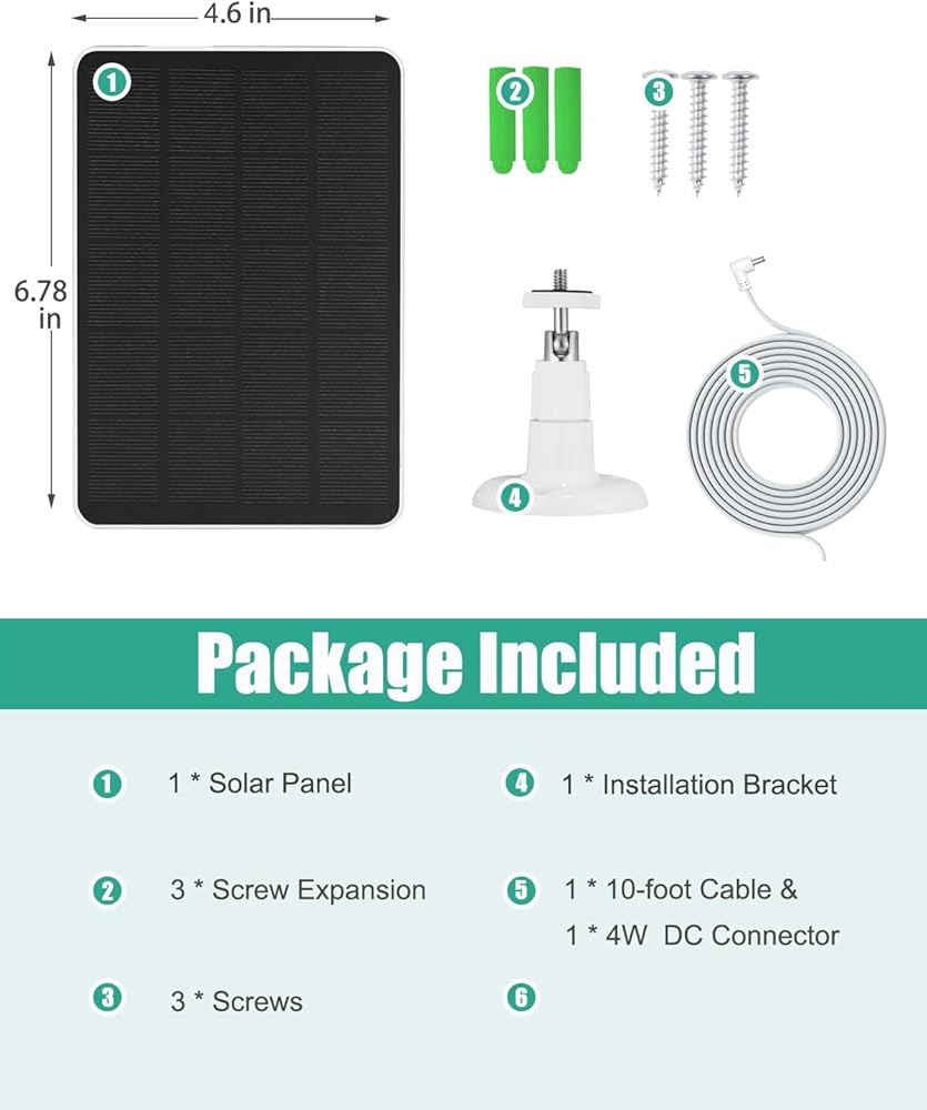 [What you will receive] 1 solar panel 1 TYPE-C cable 1 Micro USB cable 1 10-foot cable with a 4W 5V DC connector 1 installation bracket 4 screws 12 months manufacturer's warranty 24-hour customer service support.