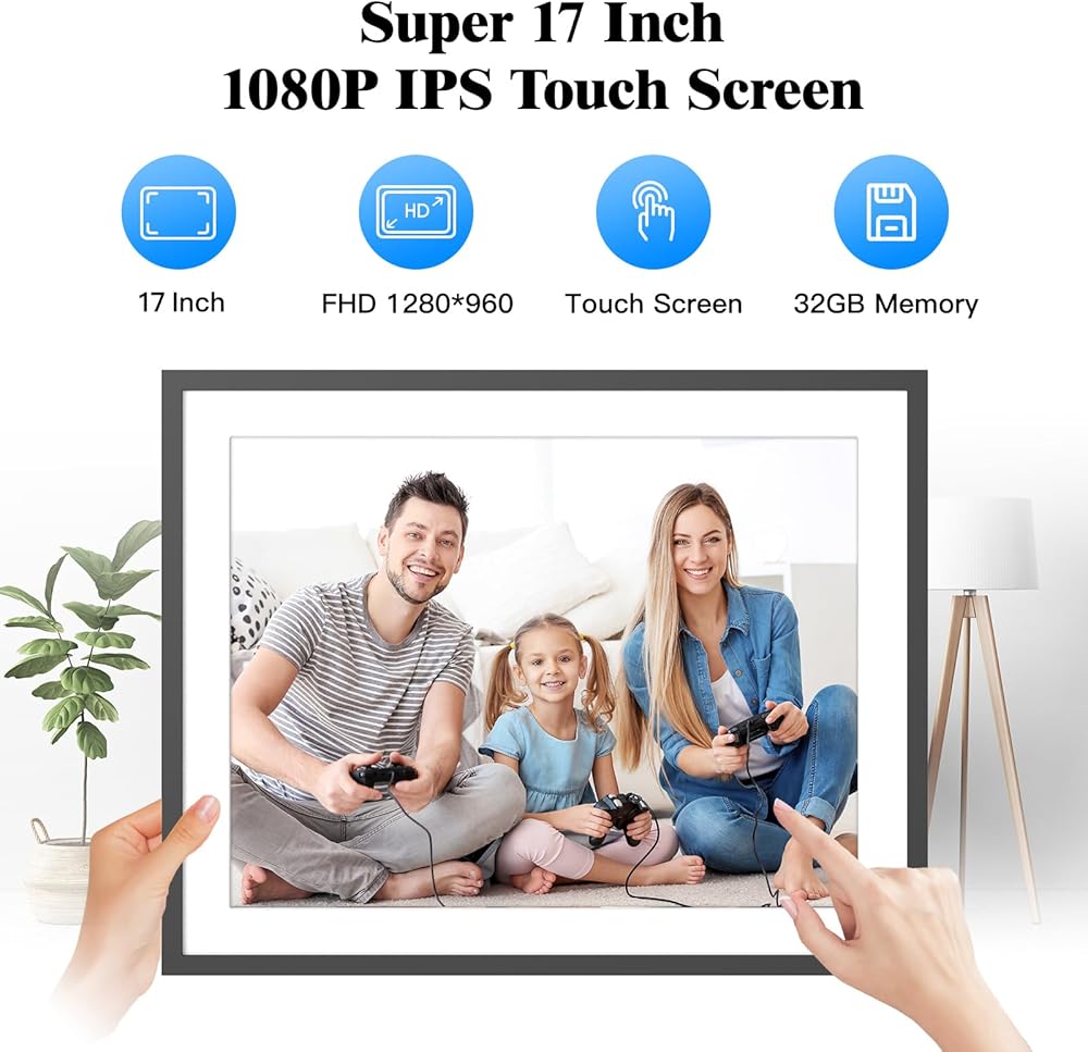 17-inch Digital Picture Frame Large Electronic Photo Frame - Wall-Mounted Dual-WiFi Digital Frame for Home Decor, Remote Control, Easily Share Photos via App Email, Gifts for Her