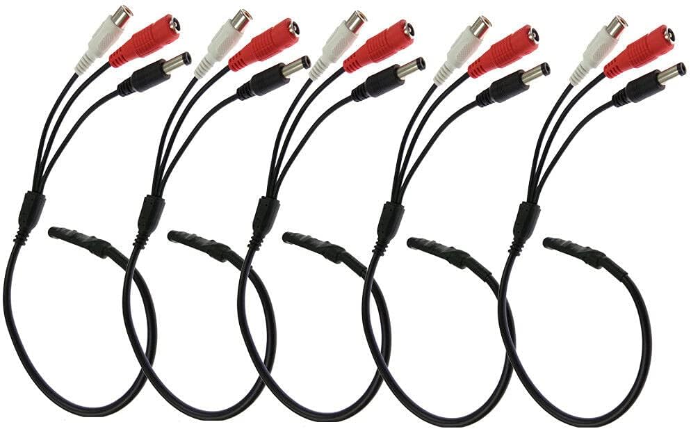 White audio output, Red power input, Black power output.