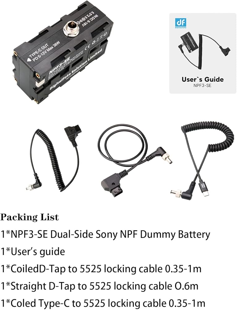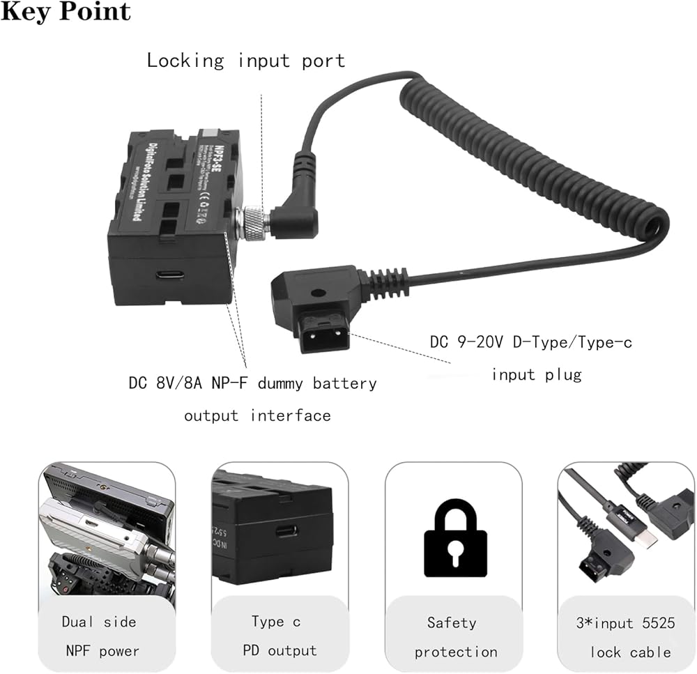 Cable specification: Coiled D-Tap to 5525 locking cable 0.35-1m, Straight D-Tap to 5525 locking cable ,0.6mColed Type-C to 5525 locking cable 0.35-1m