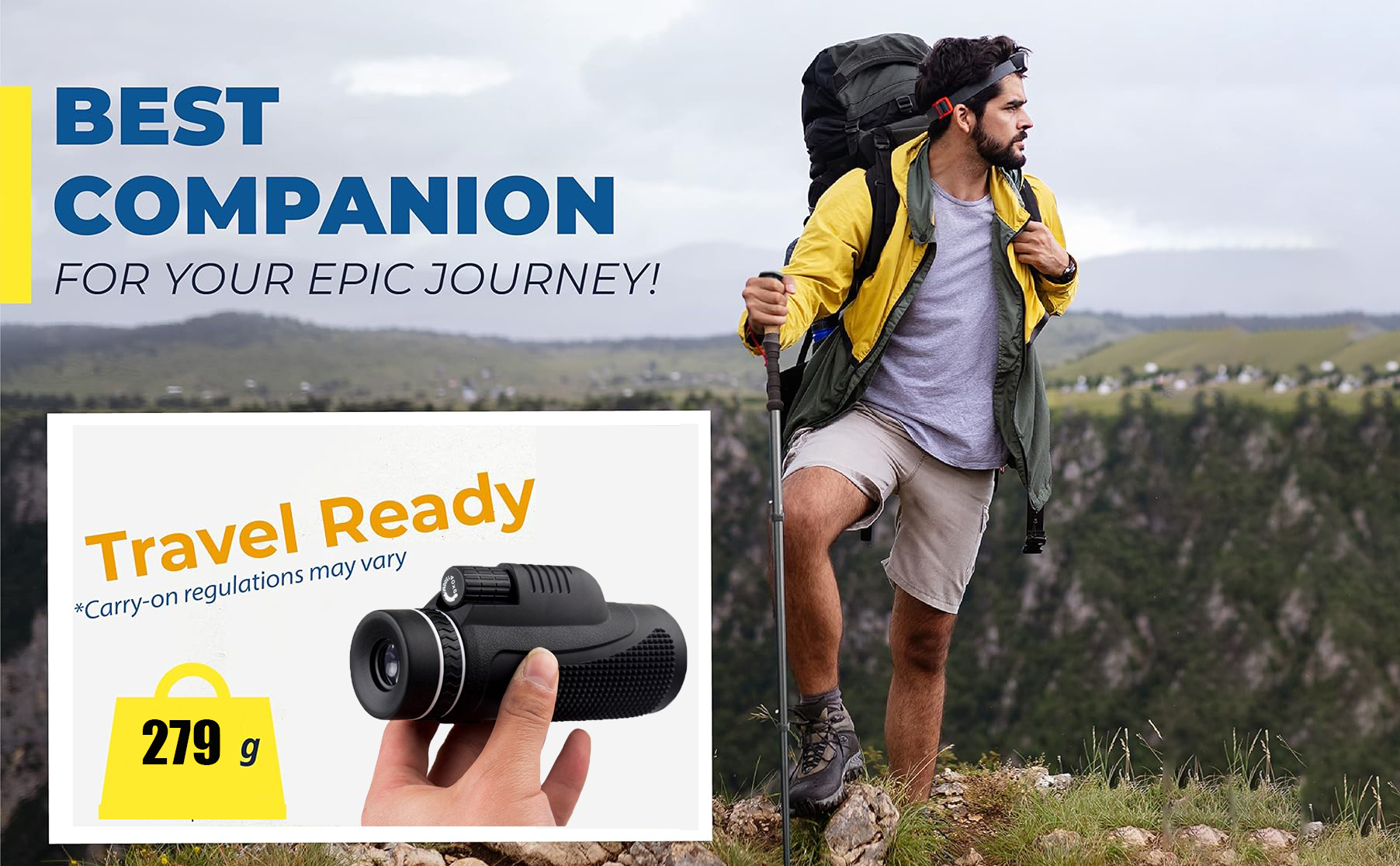 ✔︎【Compact, Waterproof, and Fogproof】- Designed with outdoor enthusiasts in mind, our monoculars for adults high powered boasts a compact and robust body that can be effortlessly operated with one hand. It withstands the harshest weather conditions, including scorching sun, thanks to its high-temperature resistance. Filled with high-purity nitrogen, it's both waterproof and fogproof, allowing you to use it confidently in rainy or humid environments, without worrying about the weather.