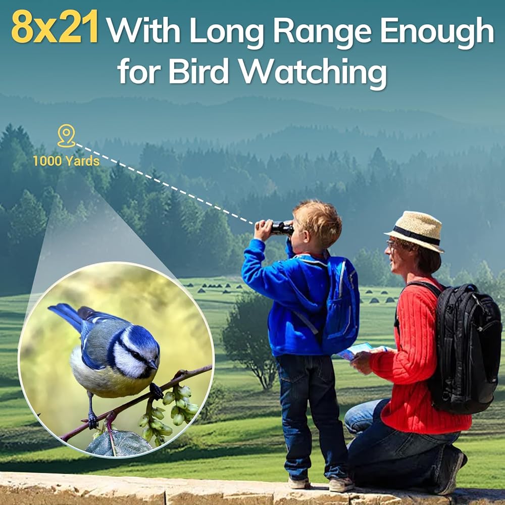 occer 8x21 Compact Binoculars for Adults Kids with Clear Vision - Small Binoculars Easily Use with Large Eyepieces - Mini Binocular for Bird Watching Cruise Travel Concert