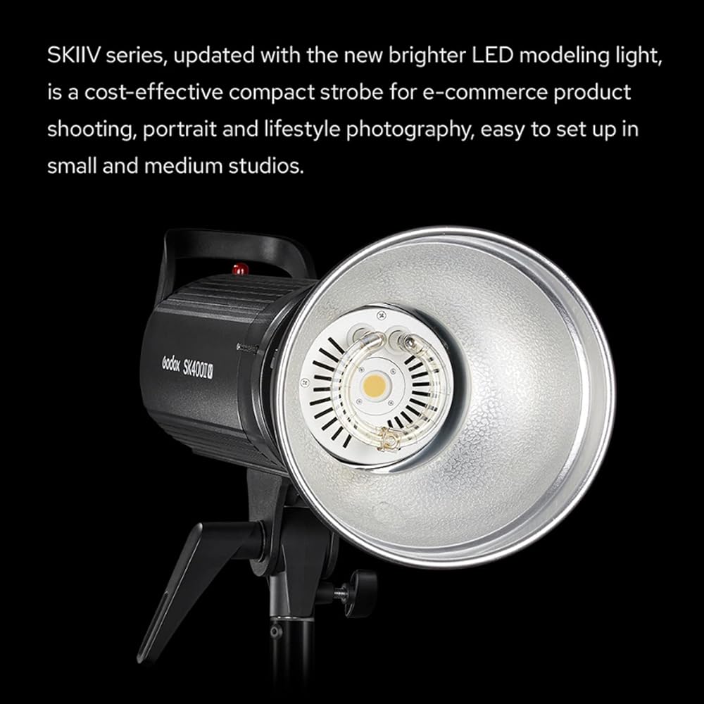 💡【Stable & Portable】With Outstand Output Stability, and No More than 2% Shifts When Under the Same Output. Godox SK400IIV Studio Strobe is Suitable for E-Commerce Product Shooting, Portrait, and Lifestyle Photography. Compact and lightweight body.
