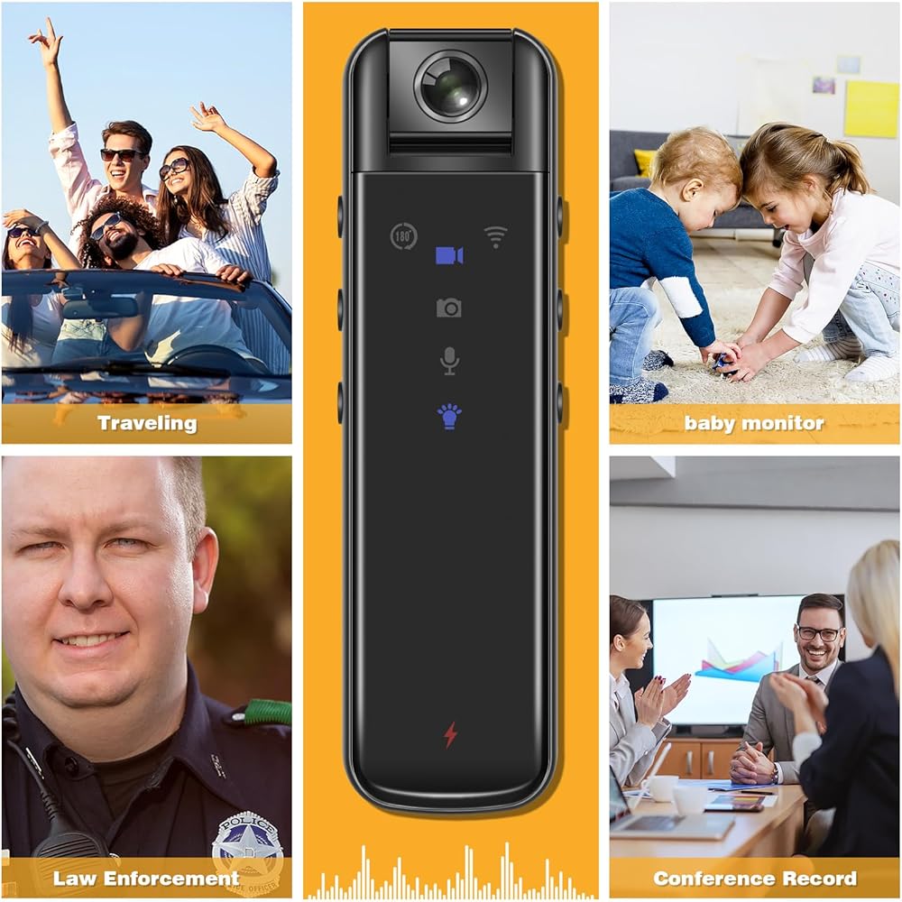 ✅【Equipped with 180-degree manual rotation lens】One-button operation function ,180-degree manual rotation to capture valuable moments of your daily life and amazing travels, the video camera has different ways to wear. It can either be clipped on your backpack or put in your pocket. Suitable for a variety of scenarios: pet filming, outdoor sports, meetings, lectures, hiking, take-out delivery Evidence collection Daily proof, and police body camera. Migrated Template
