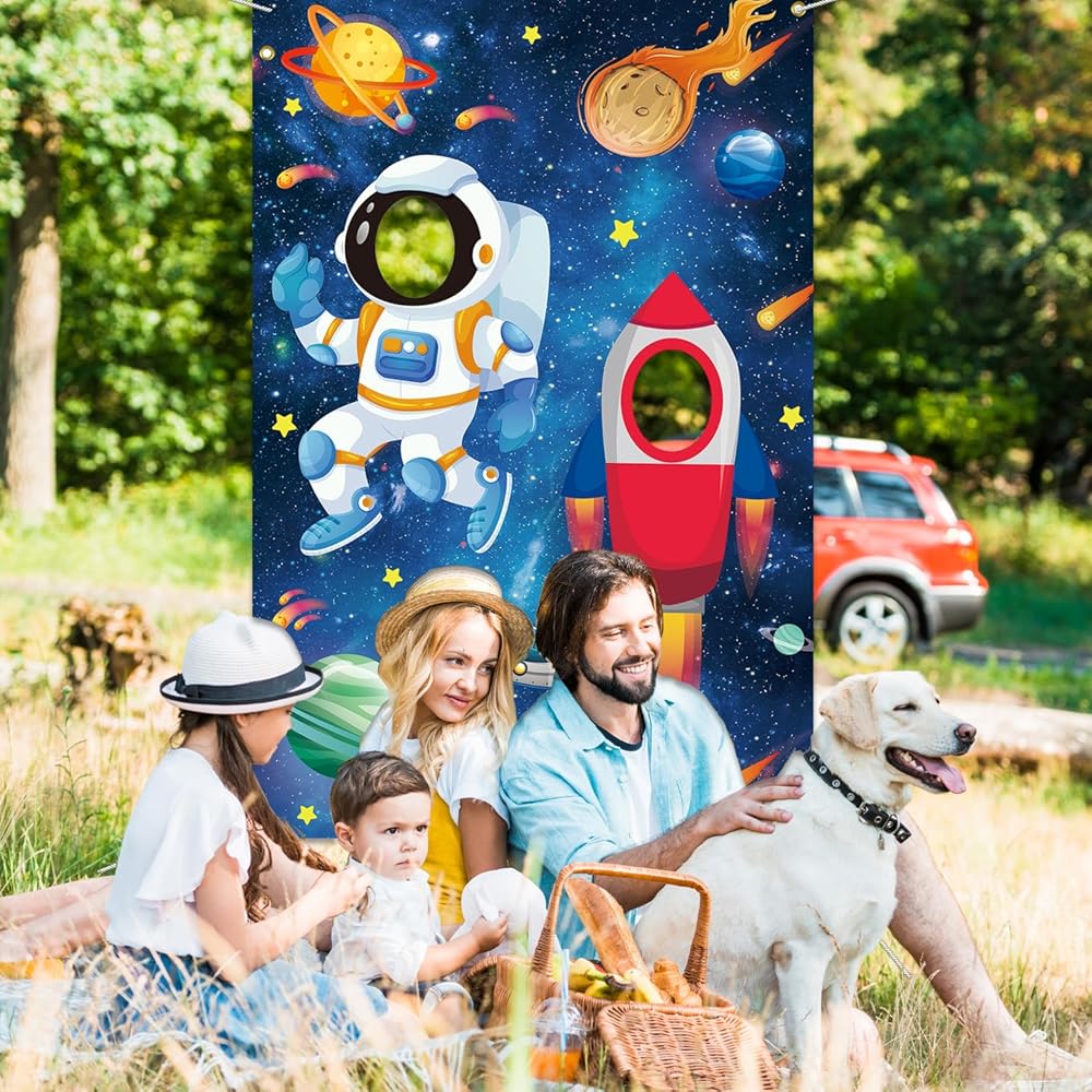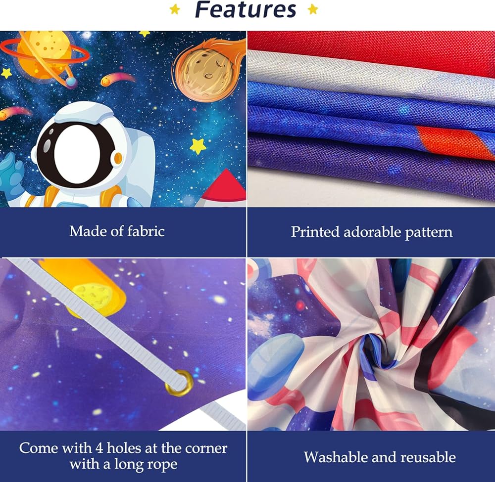 Versatile use - The kids' astronaut party game supplies serve as a backdrop for party decorations, photo booth props, and game supplies to entertain kids indoors and outdoors. Suitable for various occasions, such as outer space themed event, universe planet theme door decoration, solar system birthday party photography photo props, and more