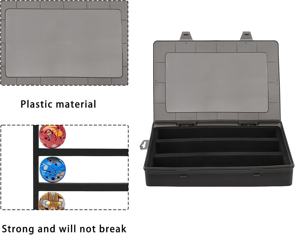 Large-capacity storage: size 9 * 11.5 * 3 inches Weight: 300 g, can hold 15PCS shots. Carrying multiple Bakugan at one time allows you to experience the fun of Bakugan. The built-in sponge is detachable and can store toys of appropriate size, such as Bakogan toys, BakuCores, battle figures, hot wheels cars, small toys, LOL, Littlest Pet Shop figures, golf balls, etc.