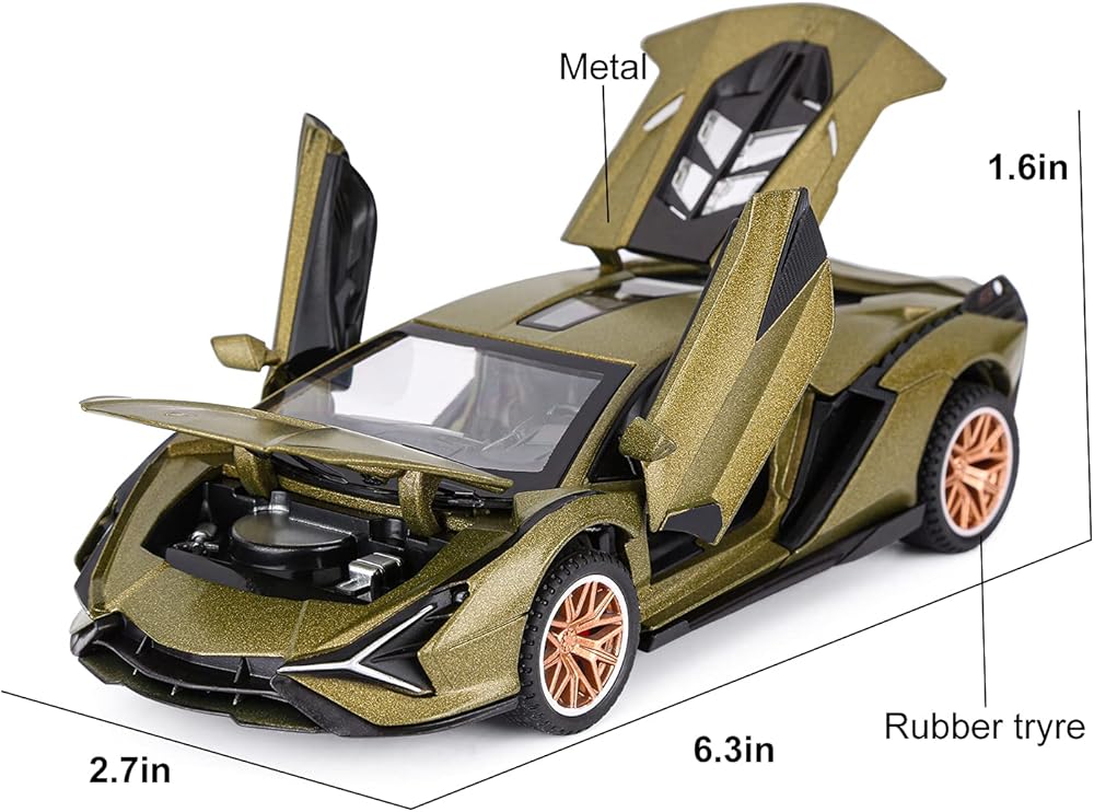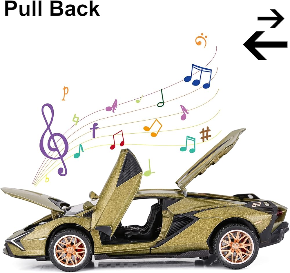The model car is perfect for Lamborghini Sian FKP37 obsessed boys. Toy car opening doors and engine compartment, the model car has movable parts, lights and hood open to see the motor.