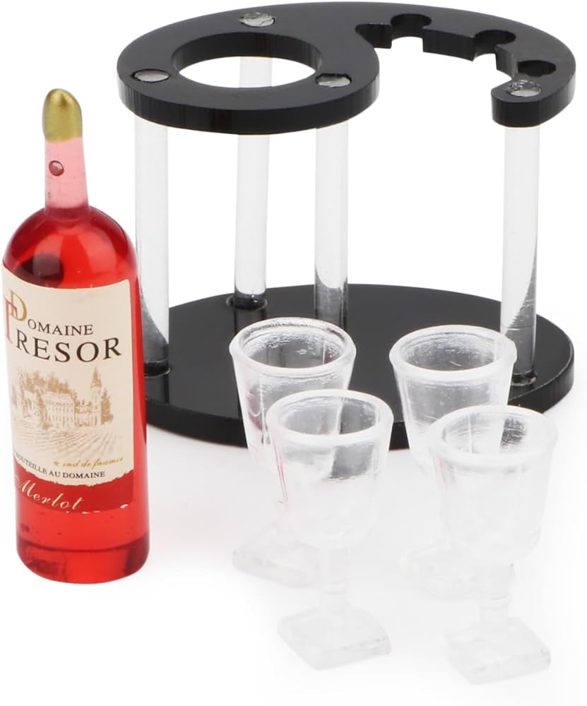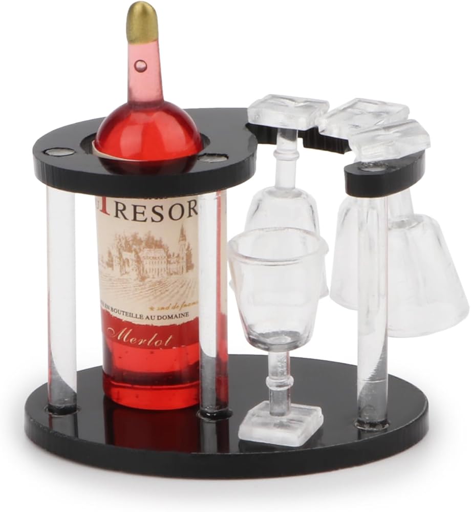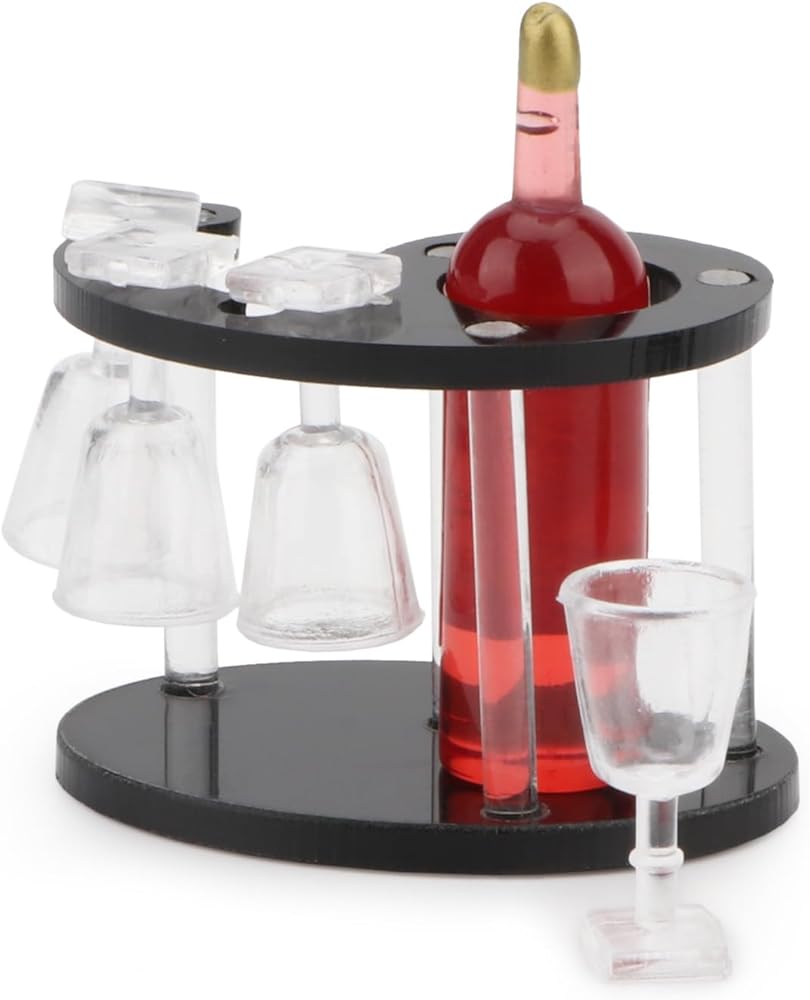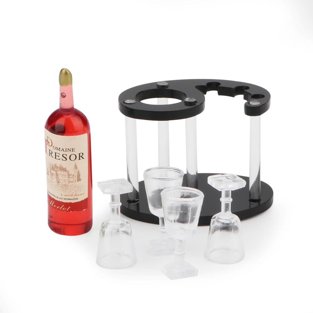- ☺Our dollhouse wine bottle, goblet, wine rack is made of high quality acrylic and plastic material, non-toxic, harmless and durable.