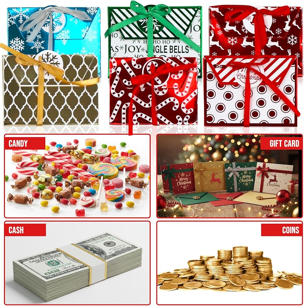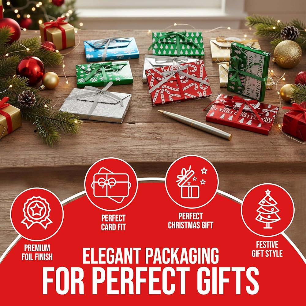 Iconikal 9-Pack Christmas Holiday Foil Embossed Gift Card Holder Boxes with Ribbons Cash Money Presents