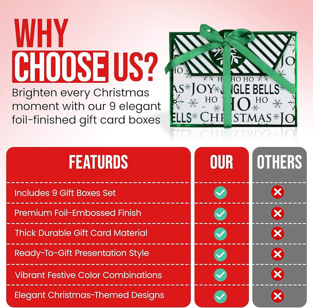 - Includes (9) gift card boxes