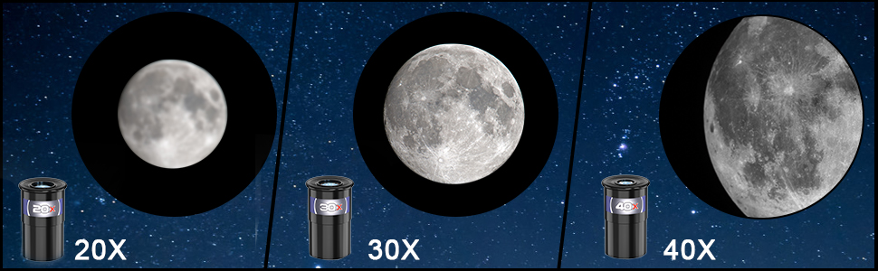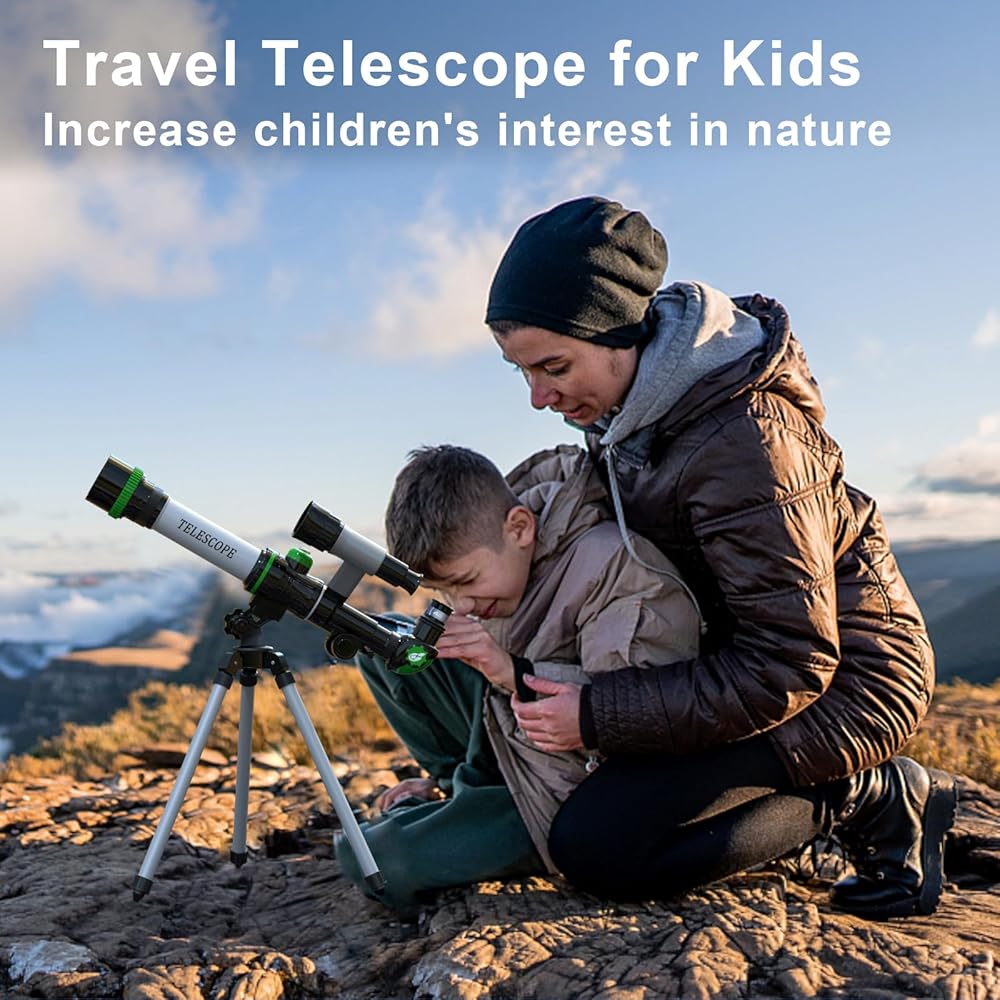Multiple Magnification Options: Our telescope for kids 8-12 is equipped with 3 eyepieces that can magnify up to 20X, 30X & 40X. Whether you're looking at the moon, buildings, birds, or other sights, it's presented clearly. It is a good space toy for kids 3-5.