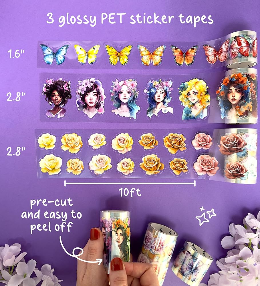 Peel-Off PET Tapes - Make your new aesthetic journal pop with our stunning journal stickers. So easy to use, our PET sticker tapes are the ultimate addition to your junk journal supplies. Made to last, from premium materials.